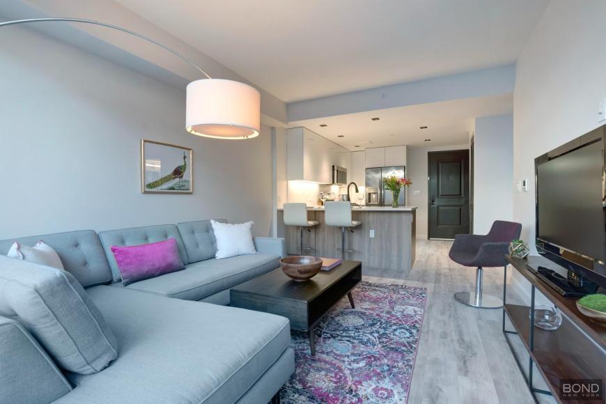 - Additional Property Details- APS92142341 - New Release! Be the first to live in this model one bedroom with private patio, available in late July or Early August.Upon entry, experience the breathtaking finish and stunning image of this beautiful home. A fully loaded chef's kitchen overlooks a spacious living area with a wall of windows opening onto a large private patio. This is a design mag quality apartment!The kitchen offers wraparound prep surfaces with stone countertops, laquered solid core cabinetry above, under cabinet lighting over marble backsplash, and solid wood cabinetry below. Top of line Frigidaire Gallery Series stainless steel fridge, range, microwave and dishwasher equip this inspiring culinary installation. There's an undermount stainless sink with designer water fixtures and recessed overhead lighting. The breakfast bar opens out onto the central living room.The living area is bright and comfortable with ample seating and media areas. A central hallway leads past the in-unit washer-dryer. A luxurious bathroom with full tub and shower features a smart showerhead with additional body sprayer. The integrated sink and vanity has a large mirror and great lighting. There's a wall nook for handy storage.The queen-sized bedroom is also very bright with a wall of windows, individual climate control and a double wide closet.The building is smartly designed with high speed connectivity and a digital package center. The excellent amenities package is included in the monthly rent and features a health and fitness center with indoor-outdoor exercise, lifting and yoga. There's also a dog run on the roof. There are 2 roof decks as well as a landscaped outoor courtyard with grilling stations, games and outdoor lounge seating with fire pit. The lower level incudes a smart laundry center, pet spa and storage cages (available by additional subscription).Tenants pay for HVAC and electricity monthly. $20 application fee per adult applicant applies. Contact us today for your private tour.BOND New York Properties is a licensed real estate broker that proudly supports equal housing opportunity.