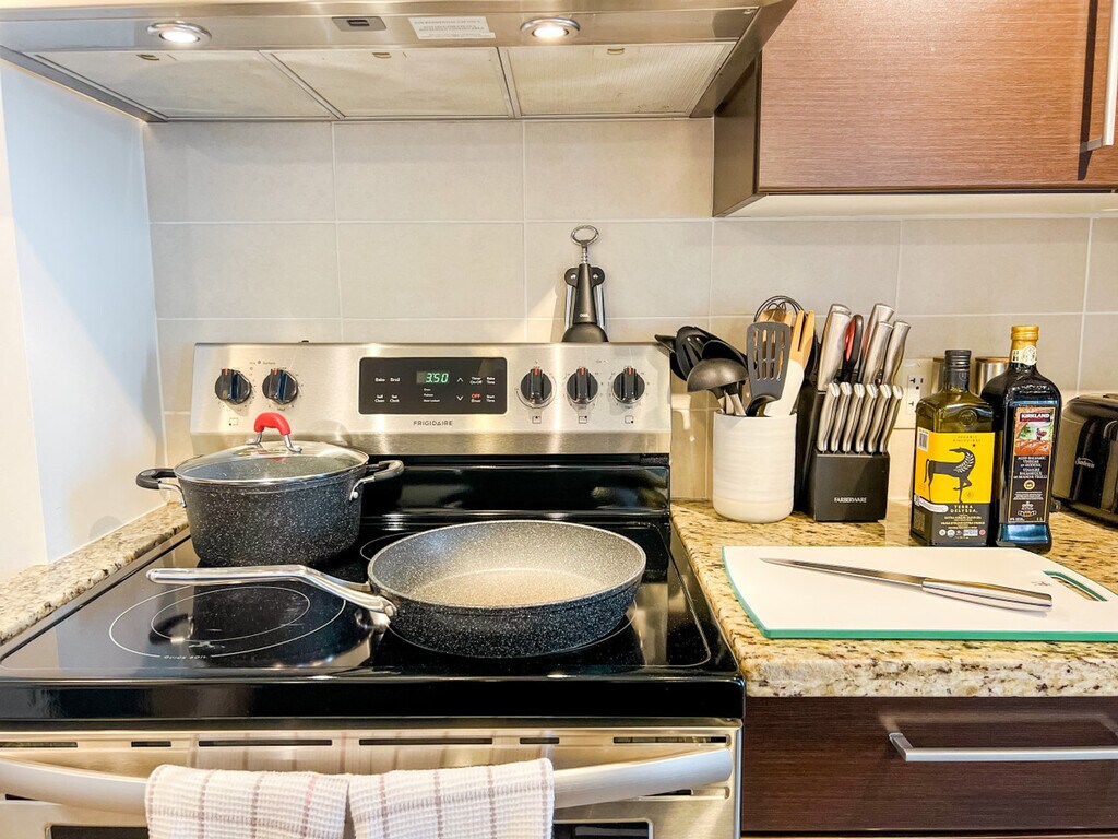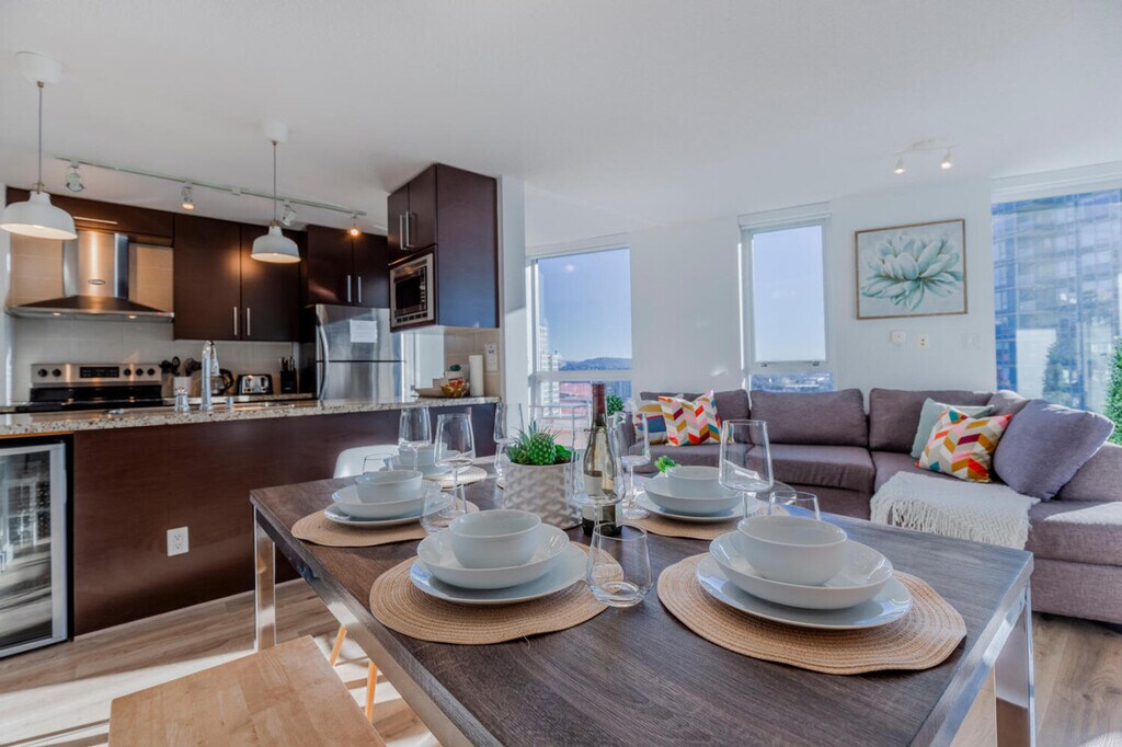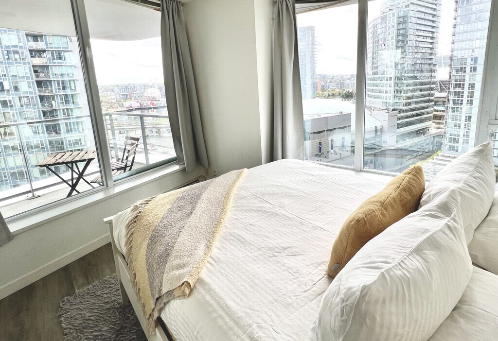 Wake up in your comfy king-size bed in a modern, spacious condo with views of downtown Vancouver and False Creek. This 3-bedroom, 2-bath apartment sleeps 8 and offers a luxurious living experience with access to a pool, hot tub, sauna, and gym. Nestled at the edge of Chinatown, Gastown, and Yaletown, you’ll enjoy the best food and events scene in Vancouver just steps away from your door. A 2-minute walk takes you to Gastown, Stadium-Chinatown Skytrain Station, Sea Wall, Roger's Arena, BC Place, and Science World. The apartment is equipped with fast Wi-Fi, Apple TV+, Prime Video, and Netflix for your entertainment. Enjoy the convenience of 1 free secure parking space included with your stay. The apartment includes 1 free secure parking space. For guests staying longer than 45 days, bike storage is available with additional fees. Late check-out is available for a fee of $145 CAD if arranged prior to your stay, or $185 if requested after your reservation starts. Unauthorized late check-out incurs a fee of $75 per 30 minutes. Nestled at the edge of Chinatown, Gastown, and Yaletown, you’ll enjoy the best food and events scene in Vancouver just steps away from your door. A 2-minute walk takes you to Gastown, Stadium-Chinatown Skytrain Station, Sea Wall, Roger's Arena, BC Place, and Science World. Please be mindful of the house rules to ensure a pleasant stay. No shoes in the house, and respect the space like it is your own. Be careful with the keys/FOBS, as they are expensive to replace, with a fee of up to $200 per FOB. No eating or drinking in bedrooms, and stains on the couch, bed linens, or towels may incur special rush cleaning fees of up to $400 per stained area. No unregistered guests or visitors are allowed, with a maximum property capacity of 8 people. Illegal downloads are not permitted, and fines could be passed on to you. No smoking inside the suite or on the balcony, with a $200 fine for each offense. No parties or loud noise after 10pm, with a $1000 fine for violations. No animals are allowed, with a $400 detailing cleaning fee if any are found. Please refrain from having deliveries sent to the address. Guest verification is required before releasing check-in details, including a signed rental agreement, completed online check-in form, and government-issued photo ID with a live selfie. Unauthorized late check-out incurs a fee of $75 per 30 minutes. [SI]
