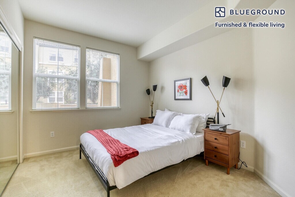 Discover the best of Santa Clara, with this two bedroom apartment in Rivermark of Santa Clara. It’ll be easy to simply show up and start living in this airy furnished apartment with its fully equipped kitchen, stylish living room, and our dedicated, on-the-ground support. (ID #SFO1587) The advertised rate of $1,960/month is the lowest available price, based on a 1 month(s) and 29 day(s) stay with a move-in date of November 6, 2025. If you’re looking for a 1-year stay, the rate is $4,600/month. Rates vary depending on the duration of stay, season, and other parameters. For exact pricing and additional pricing components, please visit our website and enter your desired move-in and move-out dates. The rate is applicable when billed upfront; it can be higher if billed in multiple payments. Brokers are welcome to reach out. Were you looking for an unfurnished lease? Try Blueground instead and upgrade from unfurnished to furnished living: - Furnished at rates comparable to unfurnished - No setup or furniture costs - save thousands - Move-in ready - save time, just bring your suitcase Designed with you in mind As with any Blueground apartment, you’ll find a thoughtfully designed space complete with beautiful furniture and a fully equipped kitchen in this two bedroom property. And, thanks to our superior quality mattresses, luxury linens, and towels, you can relax knowing you’ll always feel comfortably at home. When you’re ready for some fun, you can take in the Santa Clara vibes or bring the entertainment to you with the premium wireless speaker or smart TV. This apartment also offers in-apartment laundry. Sleeping arrangements King Bed, 70.8in/180cm Queen Bed, 63in/160cm Amenities Building amenities unique to this two bedroom apartment include an on-site: - Dryer - Swimming pool - Washing machine - Parking - Pets allowed Arrival and ongoing support The entire apartment is yours to enjoy! Throughout your stay, you’ll have access to our Client Experience team through the Blueground App. You can schedule additional cleanings, submit maintenance requests, and view our neighborhood recommendations with just a few taps. We’ll share all details upon confirmation of your stay. Other things to note Building amenities may have an extra cost. This Blueground apartment has flexible lease options, allowing you to book it for one month, a year, or more. Pets are welcome, though weight limits and breed restrictions apply and may incur fees. Parking is offered based on availability and is subject to a fee. Please keep in mind that this is a walk up building. We take great pride in ensuring every photo displayed is shot in our own units with our actual furnishings. That said, we regularly refresh our decor and furniture arrangement, which may differ from what’s pictured. Also note - This apartment is located near a railway, so expect to hear moderate noise when trains pass [SI]