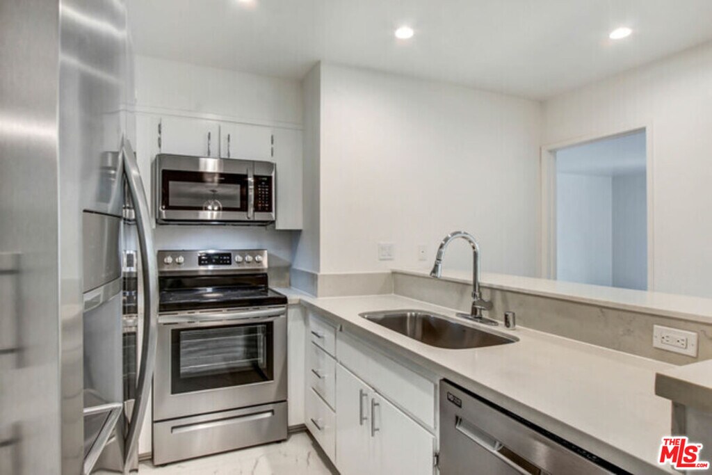 2BR/2BA front-facing unit. This bright second-floor apartment is filled with natural light and designed for modern living. The open floor plan features a private balcony and a kitchen with bar seating, ample cabinetry, and a dishwasher. Both bedrooms include en-suite bathrooms, creating two comfortable and private primary suites. The building offers a pool and fitness center, and the unit comes with two tandem parking spaces and additional storage in a gated garage. Ideally located near UCLA, Westwood, and Century City, with easy access to major freeways. MLS# 25629173