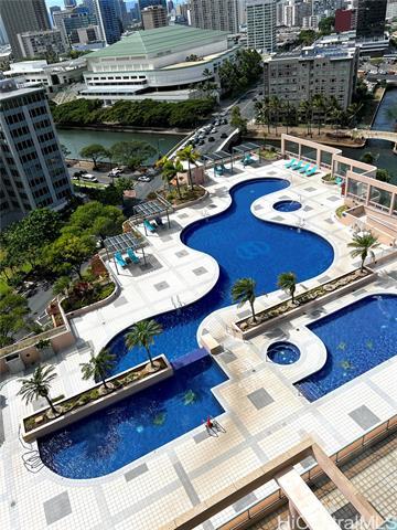 DESCRIPTION: Waikiki Landmark: Luxury at the gateway into Waikiki. Conveniently located close to shops, restaurants and beaches. This 1128 sq ft, 22nd floor 2 bedroom, 2 bathroom unit overlooks the recreation/pool deck and features mountain and city views. The draperies have just been replaced and it's freshly painted. It features central AC, 2 reserved parking spaces, an induction cooktop, oven, microwave hood, dishwasher, refrigerator, washer/dryer. Available now for a 1 year minimum lease. Basic cable, internet, water and sewer are included. NO smoking and no pets are permitted. Renter's Insurance is required, $22 per adult application fee. AMENITIES: Swimming Pool Lap pool 2 heated spas BBQ Patio/deck Fitness Center