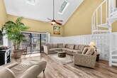 Feel at home in this gorgeous loft-style 2-bedroom, 2-bath condo located in Surfside Beach's Golf Colony. The downstairs bedroom features a queen bed, closet with blanket and extra pillows, and a 45" flat-screen TV with premium cable, as well as an en suite bath with a huge stand-up shower and beautiful bronze high-end finishes. The open-plan living/kitchen/dining area is flooded with natural light from the vaulted ceilings and skylights. The kitchen has granite countertops, all modern appliances, and the same high-end finishes as the rest of the condo. There is a large and comfy sectional sofa, leather lounge chair and ottoman, a huge dining table with seating for 4, and additional bar stool seating for 3 just adjacent to the kitchen. Upstairs in the loft suite, you will find a king bed with premium mattress, twin bed with a concealed trundle, walk-in closet, and additional en suite bathroom with a tub/shower combo and premium fixtures and vanity. Linen service for all beds in the home, as well as bath towels, hand towels, and wash cloths, is available for an additional fee of $50 for your stay. You will be only 1.5 miles from the Surfside beaches and all the amenities of the Southern Strand. Just 15 minutes north, you will find Broadway at the Beach and the heart of Myrtle Beach, and 15 minutes south is the beautiful Murrells Inlet, the seafood capital of South Carolina. A minimum age requirement of 25 applies. Routine pest control treatment might be scheduled during your stay, typically occurring on the 2nd Tuesday of each month. A fine may be applied if entry is refused to the licensed and insured pest control technician. [SI]
