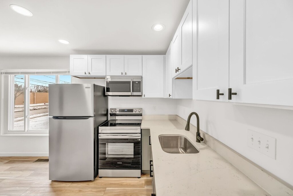 Welcome to our newly renovated 2-bedroom, 1-bathroom apartment in Rocky River, OH. This updated apartment features brand new kitchen with stainless steel appliances, new flooring, modern fixtures, and a freshly painted interior. New bathroom! With on-site payrange laundry and off-street parking, convenience is at your fingertips with additional private storage in the common area basement. Located in a prime area, this apartment is perfect for those seeking a modern and comfortable living space. Don't miss out on the opportunity to call this updated apartment your new home. Contact us today for more information! Common area payrange laundry, tenant responsible electric and gas, $25 water/sewer utility fee. Common parking lot, shared lot with no dedicated spot. Refrigerator, Stove, Dishwasher and a Microwave included. Cats and Dogs under 25 lbs. are permitted.(Pet fee applicable) A $50 nonrefundable application fee is required for each applicant over 18, which includes a credit, criminal and eviction background check and verifies income.