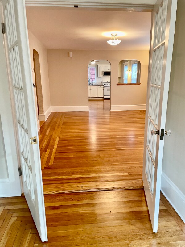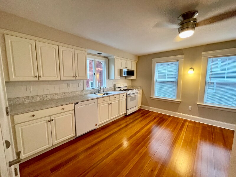 JUST RENOVATED elegant first floor living space located in a quiet neighborhood in the heart of East Side. Large sunny rooms with gleaming hardwoods throughout. Large eat in kitchen, double living room or dining room. Nice architectural details with French doors, dimmer LED sconces. Electric log fireplace. FREE LAUNDRY n basement. (Not coin op). Filtered drinking water in kitchen. New appliances. Close to many amenities and eateries in Wayland Square, Thayer Street. WALK TO BROWN ! Only 0.4 miles away.