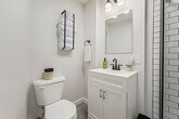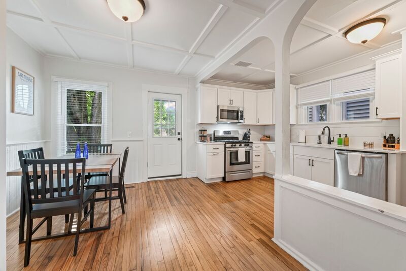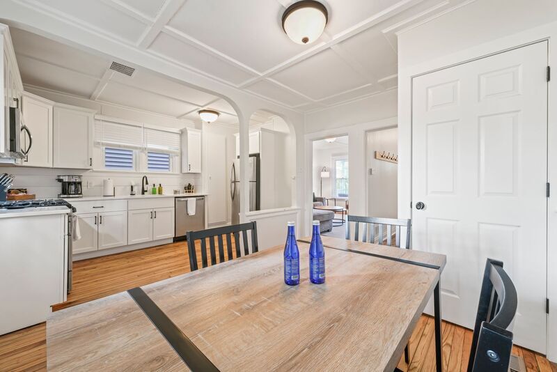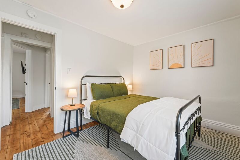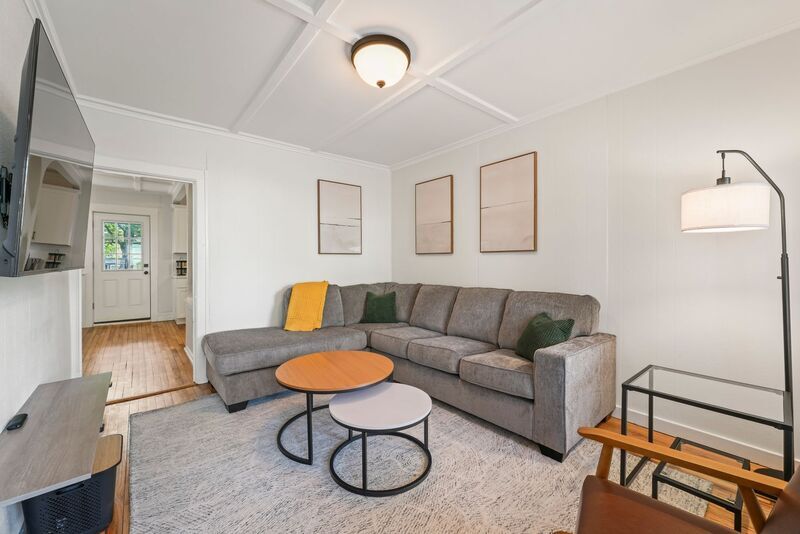 Move-in ready on January 5th!! This 2bed +office/1bath, 900ft² private two story house in the northern end of downtown Saratoga is freshly renovated and fully furnished, complete with modern day amenities, dedicated generous office space and home away from home comforts. Expansive restored hard woods, bright white Shaker cabinetry stocked with cooking/baking/dining essentials, stainless steel appliances(5 burner gas stove), comfortable lounge areas and an inviting furnished front porch perfect for soaking in Saratoga's warm weather days. Open kitchen/dining area faces the expansive shared back yard with a welcoming Adirondack seating area to enjoy. Relaxing furnished Front Porch and backyard Adirondack style seating •Laundry - In Unit! •Fully outfitted kitchen •Towels/linens provided •Shared furnished front porch •Work from home accommodations •Coffee, groceries, movies, dining a few short blocks. •NONsmokers Strictly! •3 person Occupancy max Lease Lengths Available: 6, 12, or 16 months ANIMALS: Animal friendly - max 2 ≤50lb total animals weight limit NEIGHBORHOOD: This property is located conveniently in a downtown Saratoga Springs neighborhood with on street parking. Mere walking blocks to Skidmore College, Saratoga Hospital or downtown Broadway's shopping, dining, parks and nightlife. A very brief ride to the Saratoga Race Course or Saratoga Performing Arts Center. Given the downtown neighborhood location there is potential for related audible noise. Complimentary earplugs are provided to accommodate guest preference. A convenient few steps from the street parking will find you right at the front porch entrance to the first floor kitchen/living/dining spaces. Up a full flight of stairs leads to the second floor bathroom, office and bedrooms. We have thoughtfully outfitted the space with accommodations terrific for relaxing, cooking, dining, sleeping, bathing and working. 2 BEDROOMS + OFFICE: For sleeping there are 2 second floor bedrooms, one with a Queen bed and another with a twin-trundle to sleep 2 + bonus office space. Generous work from home friendly dedicated office space complete with a large corner desk, rolling chair, monitor and comfortable arm chair. KITCHEN/ DINING: For meal time there is a dining table, chairs & place settings for 4, plentiful bakeware and cookware as well as an outdoor grill for a wide variety of culinary prep wants and needs. BATHROOM: For bathing there is 1 second floor beautifully updated bath stocked with beauty care basics, plentiful bath linens and a gorgeous subway tile full size stand up shower. LAUNDRY: Full size stackable washer/dryer in a closet off the dining room. RELAXATION: For indoor relaxation you'll find board games along with Smart TVs powered by free high speed internet, complete with basic cable loaded with streaming services apps ready for personal login access. OUTDOORS: For outdoor enjoyment there is a furnished front porch perfect for enjoying fresh morning coffee or cozy evening conversation! Outdoor grill available for use in the outdoor yard space. ACCESS: This is an entire private house with its own private secure entry. The yard space is semi-shared with the residents of our buildings on either side. PARKING: Street parking only UTILITIES: Flat- $125 Property Living Fee - Cable and WiFi included! Metered Gas and Electric ONE TIIME FEES: $250 cleaning fee $95 Move In