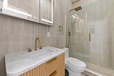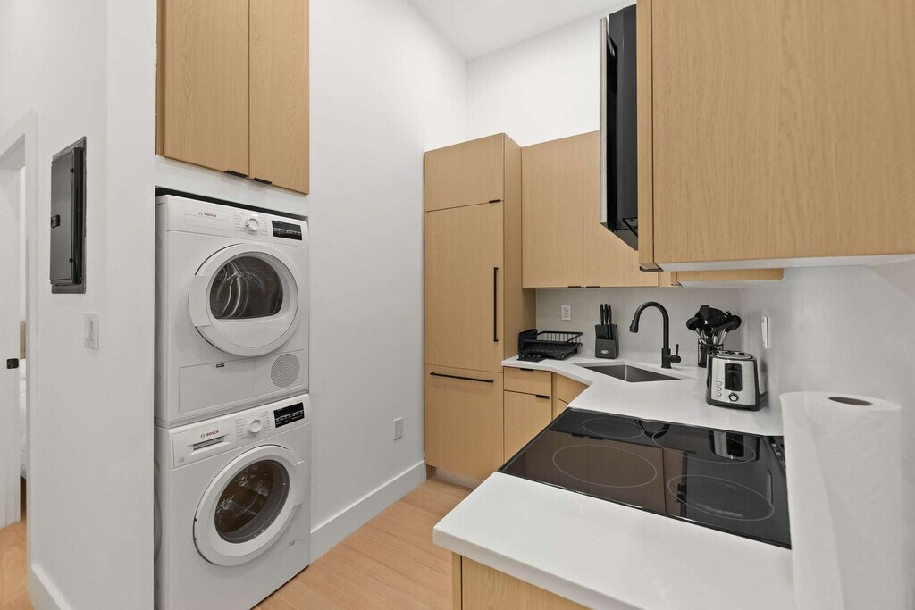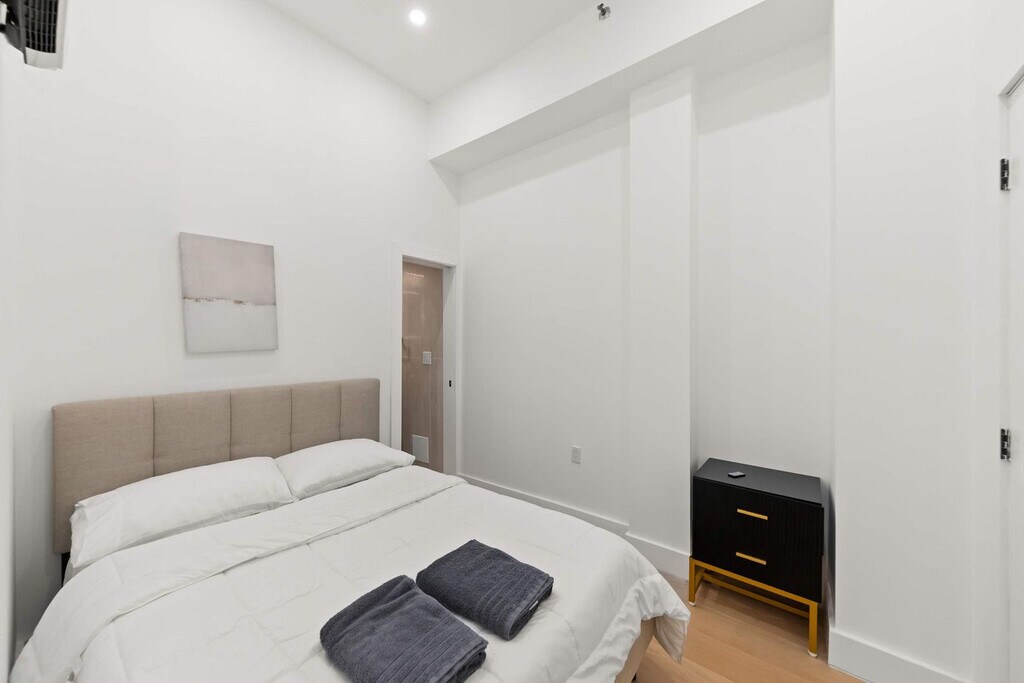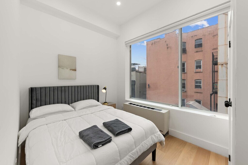 Welcome to your stylish East Village retreat. This brand-new 2-bedroom, 1-bathroom apartment is thoughtfully designed to offer both comfort and sophistication, perfect for couples, families, or friends traveling together. Located in a building with an elevator for easy access and a virtual doorman for secure, keyless entry, you'll feel at home from the moment you arrive. Inside the apartment, you'll find a spacious layout with two full bedrooms that are bathed in natural light. The chef’s kitchen boasts marble countertops, Bosch and Bertazzoni appliances, a dishwasher, and island seating. Modern comforts include built-in A/C and heating, electric shades, and custom cabinetry. Enjoy the convenience of an in-unit washer and dryer, and unwind in the spa-style bathroom featuring marble finishes, double sinks, and high-end fixtures. The new hardwood floors are warm, polished, and inviting. The building offers a stunning roof deck with sweeping city views, perfect for relaxation and entertainment. Step outside and you’re in the heart of the East Village, surrounded by vibrant restaurants, cafes, and nightlife. Whether you’re here for work, a weekend getaway, or an extended stay, this home offers everything you need to live like a local in style. This apartment is remote work-friendly with its spacious layout and modern comforts, providing an ideal environment for productivity. [SI]