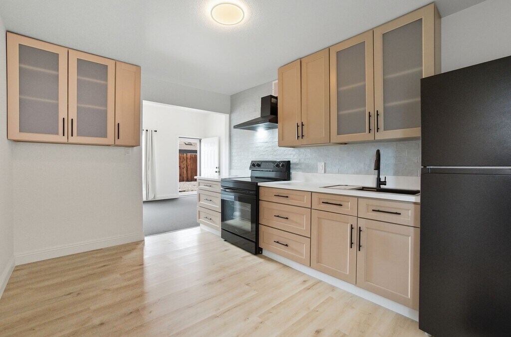 Welcome to this Fully Remodeled Modern 2-bedroom, 1-bathroom home located in the vibrant city of Las Vegas, NV. This unit is fully remodeled and features a host of modern amenities. Inside, you'll find a custom kitchen with new quartz countertops, new beautiful cabinets, sink & appliances, perfect for those who love to cook. The home also features large picture windows that allow for plenty of natural light. The bathroom is upgraded with a luxury walk-in shower, offering a spa-like experience. The property boasts Larson security doors and dusk till dawn pole lights, ensuring a well-lit and secure environment. The property also includes a washer and dryer in a dedicated laundry room attached to the back patio. The front and back patios provide ample space for outdoor relaxation or entertaining. **As an extra added perk, Trash, Sewer and Tenant Portal Fee are included in rent!