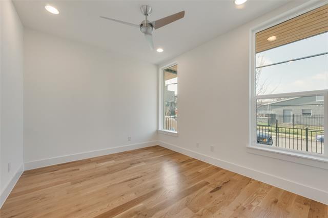 NEW 2024 CONSTRUCTION - 3 BEDROOM SMART HOME WITH ROOFTOP DECK & SKYLINE VIEWS New construction completed in 2024. This 3 bedroom, 3.5 bath fully smart home offers hardwood floors throughout, high ceilings, solid-core doors, and oversized windows with impressive Dallas skyline views. Open-concept living area flows into a modern kitchen featuring Bosch appliances, including a smart refrigerator, and high-efficiency systems throughout. All four bedrooms include private en-suite bathrooms with smart LED mirrors, plus a half bath on the main living level for guests. Enjoy outdoor living and entertaining on the expansive rooftop deck with full utility connections. Designed for energy efficiency with double-pane windows, reversible ceiling fans, a tankless water heater, and smart LG washer and dryer. Enhanced security features include a gated garage, gated front porch, keyless entry with remote locks, and front and rear video monitoring with alerts. Prime location minutes from Downtown Dallas, Uptown, major highways, and the Dallas North Tollway, offering excellent access to shopping, dining, and employment centers. Rental requirements: Income 3x rent, 700+ credit score, no eviction or criminal history. PS - Furniture, decorations, wallpapers, draperies, etc. are tenant-owned and negotiable. Otherwise, the home will largely return to the original pictured layout.