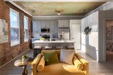 Conveniently located next to a Streetcar stop, Rhinegeist, and Findlay Market, this newly renovated condo is the perfect home base for urban explorers. Situated on the 4th floor, the building offers an elevator for easy access. The space draws inspiration from the Rhinegeist fruit ale "Bubbles." Bringing this historic building back to life has been a three-year labor of love. The apartment preserves historic charm while featuring marbled quartz countertops, brand new appliances, an in-unit washer/dryer, and two comfy-cozy beds. The second bedroom is in a loft area on the second floor, while the first bedroom is situated in the back of the first floor. Both bedrooms have their own full bathroom. The free parking advertised is one private parking space behind the building, available only for stays of 21 days or longer. Outside of this, there are wonderful parking lots and parking garage nearby, as well as street parking both free and paid. Situated in the heart of Over-the-Rhine and the bustling Brewery District along Elm Street, the apartment is less than 100 ft from the local streetcar. Just hop on and explore everything Cincinnati has to offer right at your fingertips! Parties and amplified music are strictly forbidden without advance written consent. Unauthorized parties may lead to prosecution under Ohio Revised Code and Cincinnati municipal code. Quiet hours are from 9:30pm-8am. Smoking and lighting anything indoors is prohibited, with a $300 cleaning fee for violations. A $170 re-keying fee applies for unreturned keys. Additional fees may apply for excessive cleaning, pet hair, or security issues. [SI]