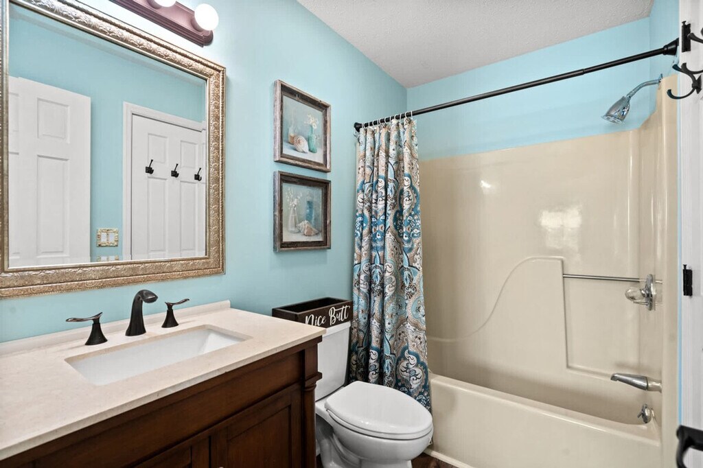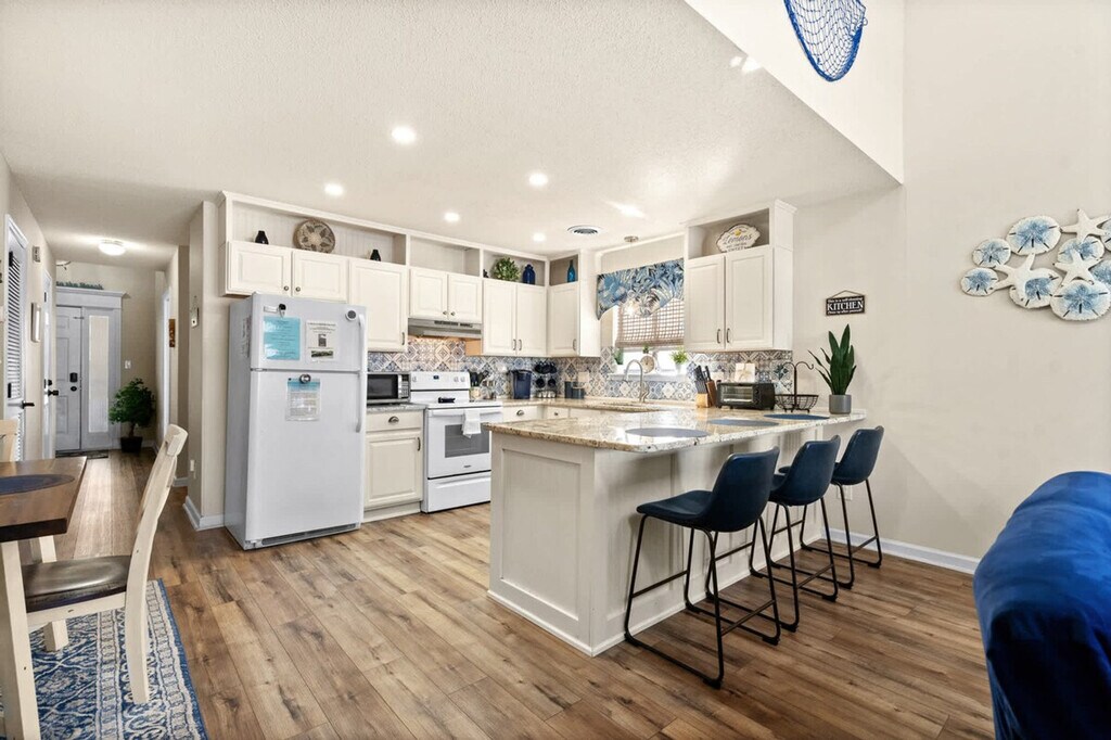 Feel at home in this beautifully appointed, modern, and spacious loft-style 2-bedroom, 2-bath condo in one of the quietest and most comfortable communities in Surfside. No expense has been spared in making this 1150 square foot condo as luxe as possible. The eat-in kitchen is fully equipped for the chef in your family to whip up something special. There will be a roll of paper towels in the kitchen, 2 rolls of toilet paper per bathroom, hand and dish soaps, and 2 laundry pods and 2 dish pods. Linen service is available for an additional fee of $50 for your stay, which includes linens for all beds in the home, as well as bath towels, hand towels, and wash cloths. You will want to bring pool/beach towels and any other linens you will need for the stay if you decide not to purchase linen service. Located in Surfside Beach's Golf Colony, you will be only 1.5 miles from the Surfside beaches and nearby local attractions. For an adventurous stay, rent a gas-powered golf cart and you can access the beaches in Surfside, as well as some restaurants and shopping, all via golf cart. Smoking and pets are not permitted. Please be informed that routine pest control treatment may be scheduled during your stay, typically occurring on the 4th Thursday of each month. The pest control technician, who is fully licensed and insured, will need access to your unit to perform the service and will knock before entering. A fine may be applied if entry is refused. [SI]