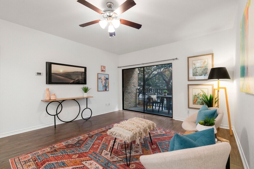 PRE-LEASE FOR AUGUST 2026! Situated just two blocks away from UT Campus. Within short walking distance of all of your favorite hot spots, dining, entertainment, CapMetro/Shuttle, Texas Union and Guadalupe shops. Features faux-wood floors, breakfast bar, and open floorplan with natural light flooding in. Includes community courtyard, large private balcony, washer/dryer, and two reserved parking spaces.