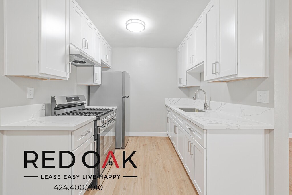 ~1 Month FREE~ Beautiful Two Bedroom with a Private Balcony, Hardwood Style Floors, Stainless Appliances, On-Site Laundry, and Parking Included ~ In Mid-City! *MOVE-IN SPECIAL* **Resident will receive a one-time credit of 1 Month FREE off of the Market Rent Price of $2,695, on approved credit. The net effective rent shows the savings over the entire 12-month lease term. The advertised price is based on the NET EFFECTIVE RENT.* Home Highlights: ~ Open & Airy: Hardwood-style floors, enhanced by recessed lighting. ~ Privacy Options: Window blinds offer light control and privacy. ~ Private Balcony: Relax or entertain in your outdoor space. ~ Temperature Control: Gas furnace and ceiling fan. ~ Kitchen: Custom cabinets, quartz counters & stainless appliances. ~ Comfortable Bedrooms: Bright, airy, with ample closet space. ~ Bathrooms: Well-lit mirror, hardwood vanity, soaking tub. ~ Utilities: Water, sewage, and trash included. ~ On-Site Laundry: Convenient facilities for easy washing. ~ Parking: Two tandem spaces included. ~ Convenient Location: Easy access to Culver City, DTLA, and the Expo Line—perfect for enjoying LA’s food scene, art spaces, and historic charm. ~ Don't miss out on the opportunity! Available for an immediate move-in. Call to schedule a viewing today! LEASE TERMS: One Year Lease Photos may not reflect the exact available unit. Availability is not guaranteed—please verify all details. Square Footage is approximate. Showings may not be 1-on-1. All information must be validated on Red Oaks Website since 3rd party websites can feed incorrect information. Pricing and availability are subject to change without notice and may vary between similar units. **All applicants receive equal consideration; we follow all Fair Housing laws.*