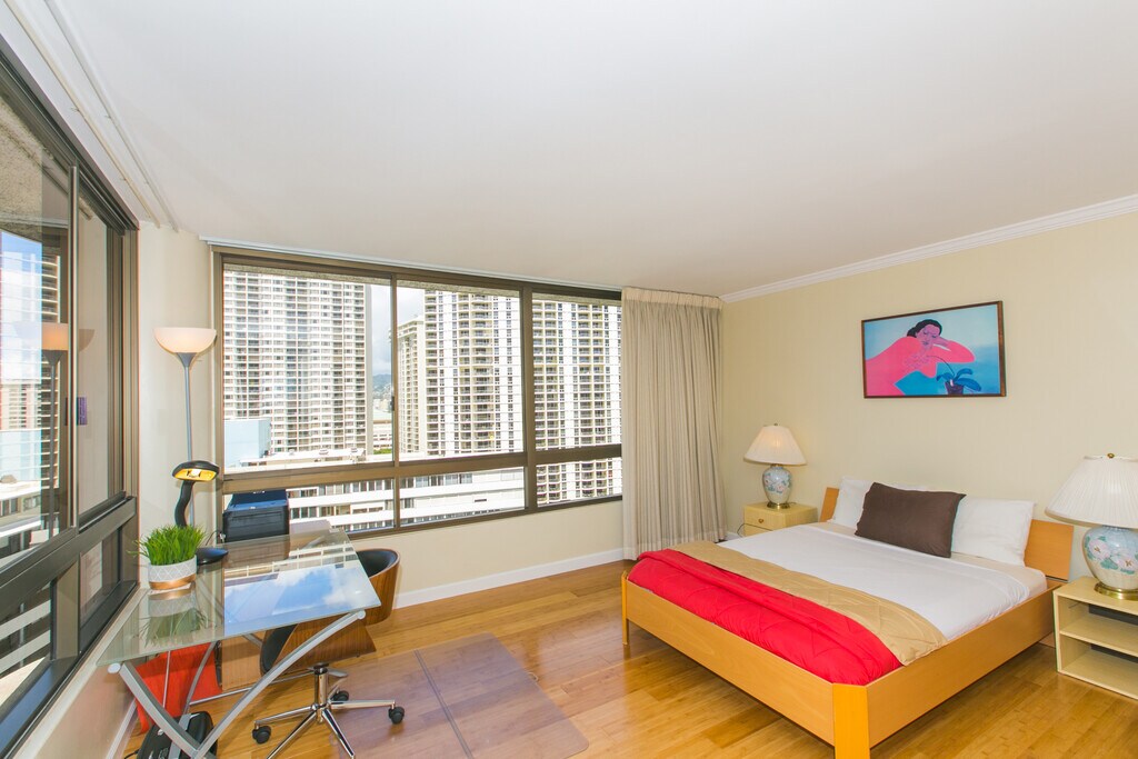 Canterbury Place is located adjacent to Ft DeRussy Park and Hilton Hawaiian Village, at the start of Waikiki. close to the beach, shopping & dining, this building makes it the perfect spot for travelers or employees on assignment as it's close to Downtown, Kaka'ako, and the Honolulu Convention Center. Basically you're at the heart of everything you would need in Waikiki! Canterbury Place offers security features included locked lobby doors, 24/7 security, and a management office on site; so safely is never an issue. Amenities in the building include a heated pool, jacuzzi, dry sauna, BBQ grills, recreation room, sun bathing, and a small tennis court. The unit has a 30-night minimum, renter pays 17.962% taxes and fees. We also collect a security deposit of $2,500. The security deposit will be refunded to you after your check out date, minus any damages/additional cleaning needed for the condo. Winter 2025 is $11,000/mo + taxes and fees, Spring 2025 is $10,500/mo + taxes and fees; Summer rate is $10,000/mo + taxes and fees; Fall rate is $9,500/mo + taxes and fees;