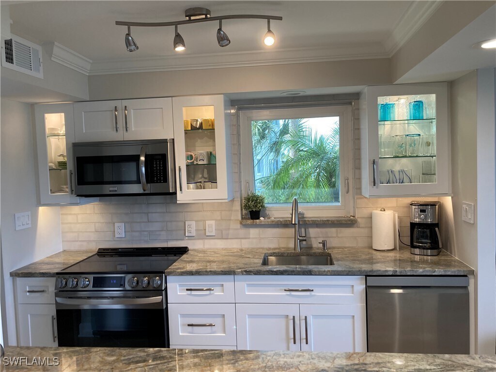 START WITH COMPLETE RENOVATION...........2 bedroom 2 bath residence DIRECTLY across the Street from the beach and Edgewater Beach Hotel.....Nestled along the Harbor are 30ft boat slips available to lease for Owners just steps from the property. Exclusive Boutique complex having only 32 units PERFECT HARMONY FOR BOTH Beach goers and Boaters SPACIOUS OPEN GREAT ROOM PLAN WITH LANAI OPENED UP TO DELIGHTFUL SUN ROOM WITH GULF VIEWS.....CENTRAL ISLAND COUNTER WITH QUARTZ counters,sleek finishes,New Upscale appliances and HIGHLIGHTING a custom wine bar. Lovely large community pool for sunning and meeting your neighbors EXTRA BONUS this property qualifies for Membership to the private MOORINGS beach club close to DINING,5th AVENUE. Truly a Gem to enjoy Season and life in Naples.