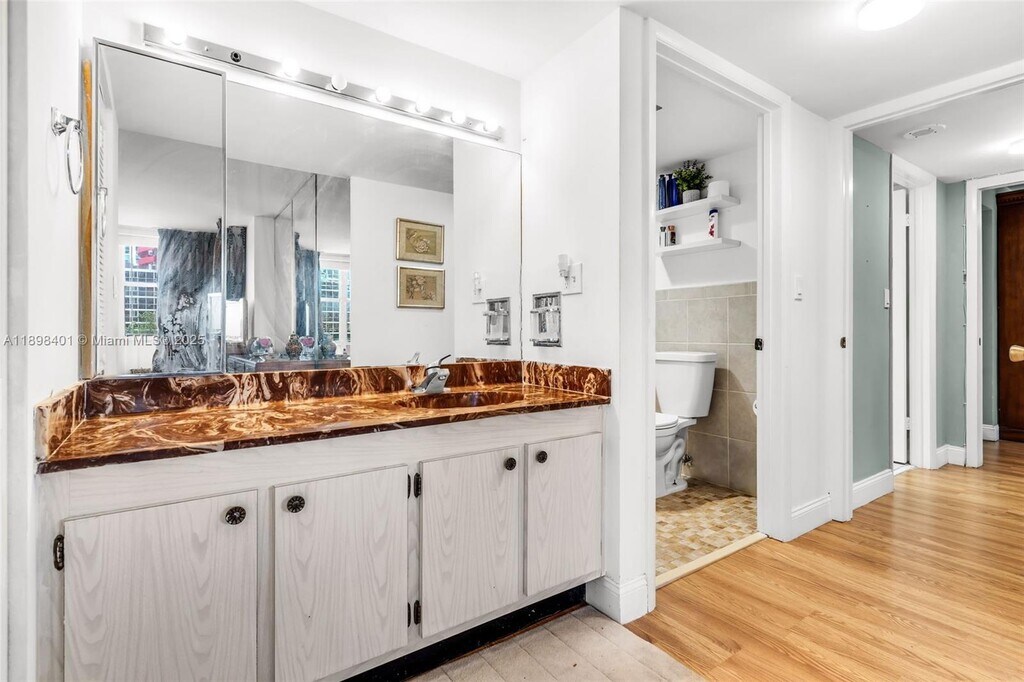 Best priced 1 bedroom in Brickell Place! Spacious, remodeled 1 bed 1.5 bath in Brickell Place. 873 SF. Enclosed balcony makes a great den. Tile floors, marble primary bath, walk-in closet, washer/dryer in unit. Large kitchen w lots of cabinets, ss appliances, guest bath. Utility closet. 1 assigned covered parking, additional parking spaces for lease. Guest parking. Complex has several pools, tennis, gym, BBQ area on the water, convenience store, kids' playground and more. Live in a waterfront complex with resort-style amenities. 24 hour notice please.