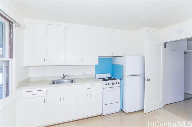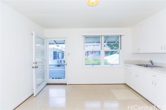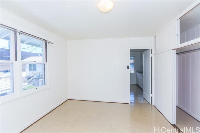 Second floor unit with tile floors throughout. Living area approximately 295 square feet. Appliances include: refrigerator and electric stove/oven and window air conditioner in bedroom. Washer hook up available. Located across McCully District Park & Pool and half a block from McCully Street. One covered parking stall. Monthly rent of $1,450. includes water/sewer. No pets/no smoking. Initial term of lease is 6 months.