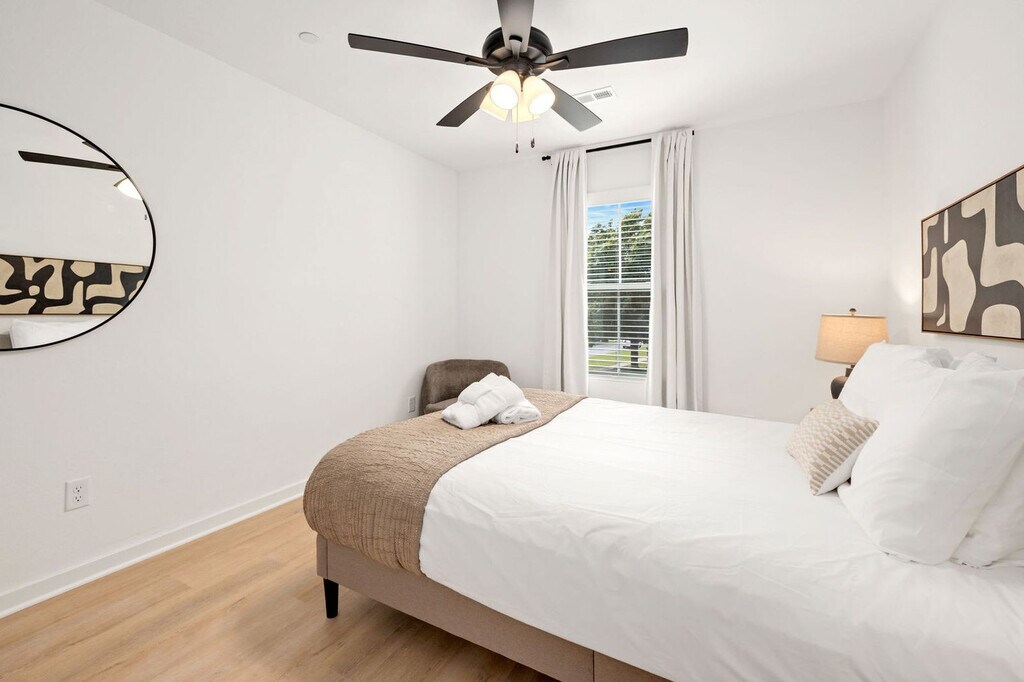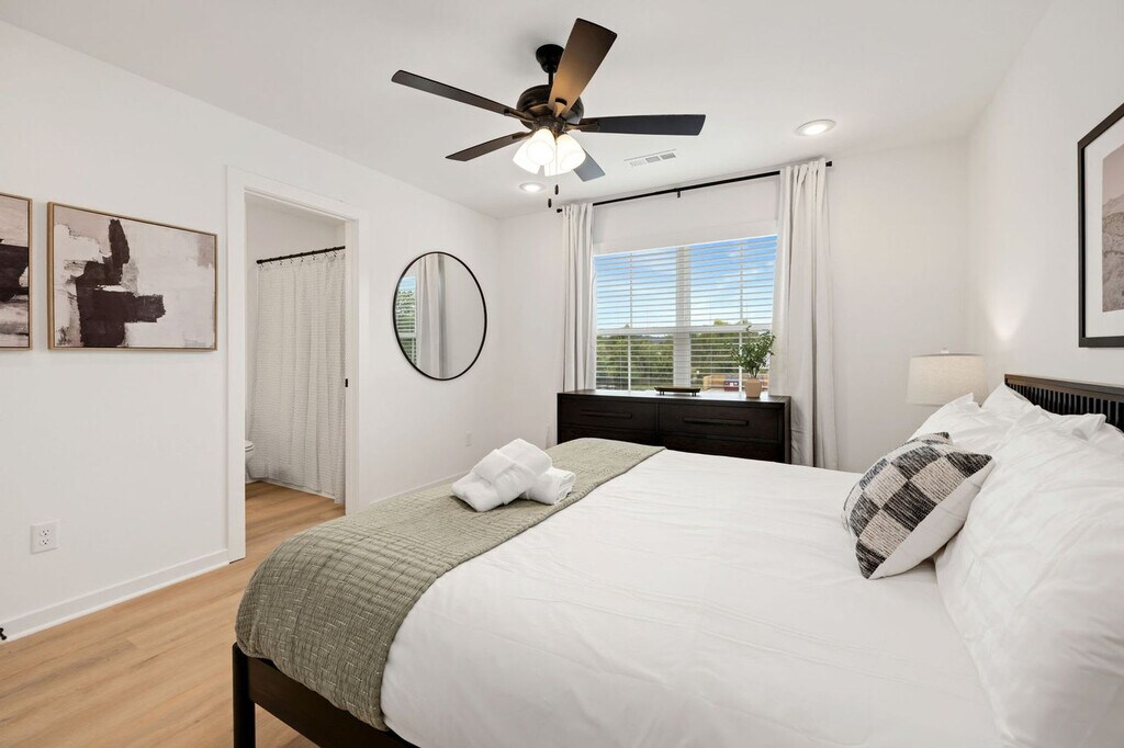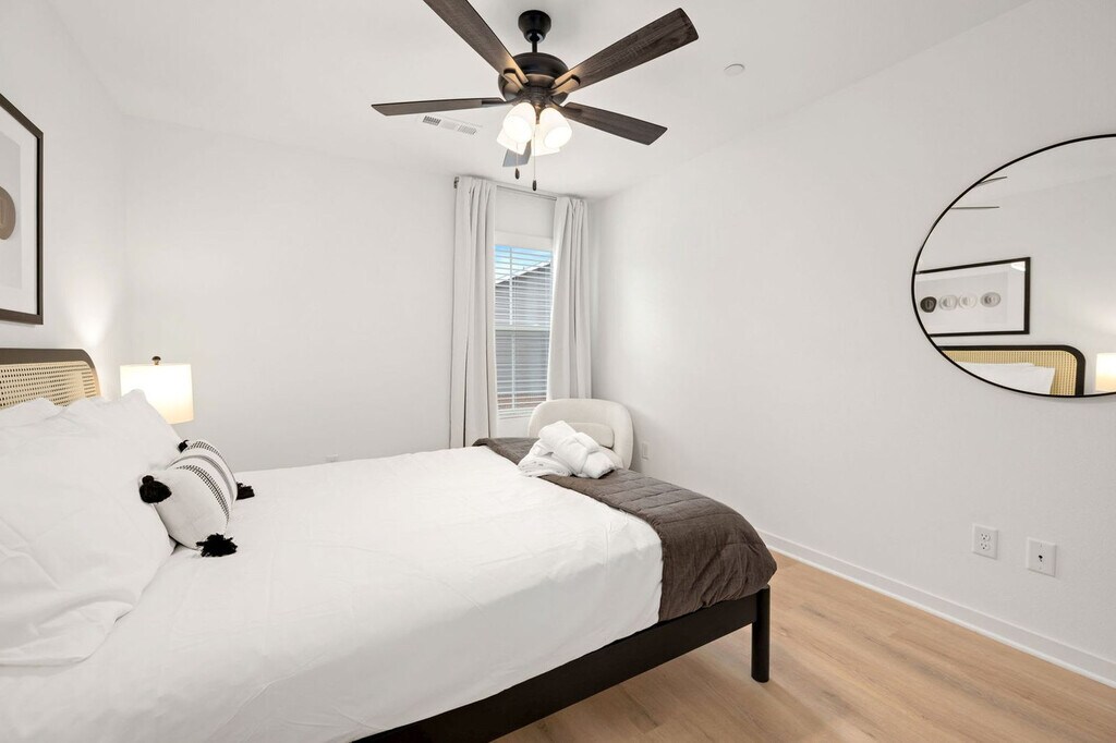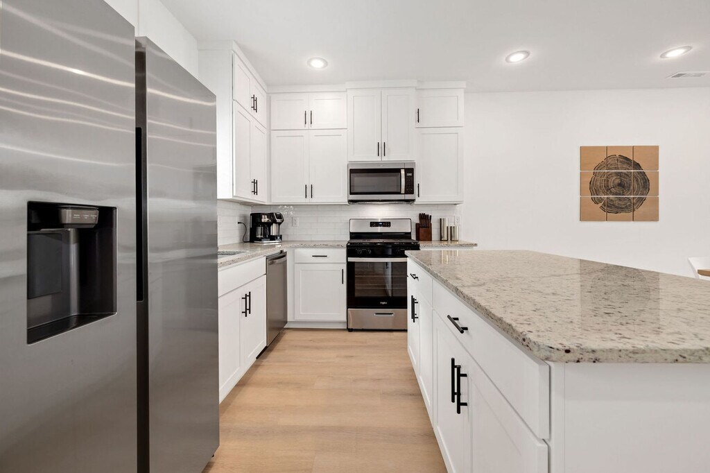 Feel at home in this inviting Fayetteville townhome, perfect for 30+ day stays. Located just 1 mile from Baum Walker Field, you can easily catch the thrilling Razorback baseball games or explore the vibrant University of Arkansas campus and downtown Fayetteville, both just a short distance away. This 3-bedroom, 2.5-bathroom townhome offers luxury amenities for up to 6 guests, complete with a bright, open floor plan that allows plenty of natural light to fill the space. The open-concept living room, kitchen, and dining area create a welcoming environment for memorable gatherings. The living room features plush seating and a large Smart TV with all your favorite streaming channels. The fully stocked kitchen is equipped with everything you need to prepare a meal or enjoy a good cup of coffee. Outside, the patio offers a refreshing space with seating and a grill, perfect for enjoying the fresh air. This pet-friendly property allows dogs, with a maximum of 3, for a fee of $90 per dog to be paid prior to your stay. Unauthorized pets will incur a fine of $400. Parking is available, and guests can enjoy the convenience of an in-unit washer and dryer. Fayetteville is home to the University of Arkansas, amazing local restaurants, shops, and popular bike trails. Whether you're visiting the University or exploring local dining options, there's something for everyone. The townhome is conveniently located near the college campus, with public transit, bike trail access, and ride-sharing services available for easy transportation. Check-in is any time after 3:00 PM. Parties or actions that result in disturbances, property damage, extensive extra cleaning, or smoking indoors will incur a fine of $1,000. This is a non-smoking home, and smoking indoors will result in a $1,000 fine plus the cost of any smoke remediation necessary. Quiet hours are between 10:00 PM and 10:00 AM. Unauthorized checkout delays will incur a fine of $100 per hour.