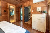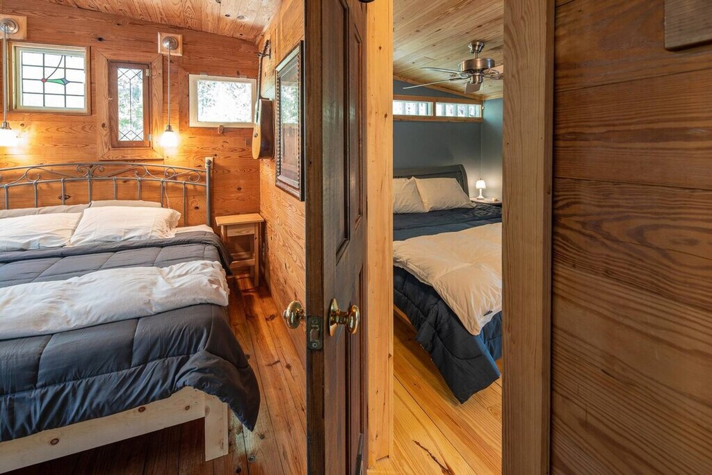 Relax in this bright and artistic guest suite, hand-built with unique touches throughout. Enjoy a private entrance and terrace, a comfortable king-size bed, a smart TV, and a kitchenette with a small refrigerator, microwave, and toaster oven. The private patio, adorned with patio lights and seating for two, offers a serene spot to unwind. This suite is perfect for getaways, rest, and retreats, all within 15 minutes from the charming towns of Carrboro, Pittsboro, and Saxapahaw, and just 10-15 minutes to Chapel Hill and 20 minutes to UNC. The guest suite features a spacious king bed, a Roku Smart TV, and an overhead fan for air circulation. The mini split AC unit ensures comfort year-round, while the curtains offer privacy or leafy views. The unique bathroom boasts a hand-built shower with galvanized tin walls and an overhead skylight, providing great water pressure and plenty of hot water from a tankless heater. The kitchenette includes a mini fridge, toaster oven, microwave, and hot water kettle, along with cups, plates, bowls, utensils, organic coffee, and a selection of teas. A small bistro set is also available for meals or work. Well-behaved pets are welcome with a $35 fee per pet per stay. Please inquire about our pet policy to ensure a happy stay for all. Unauthorized pets will incur a $200 charge. Situated on a 5-acre wooded lot, this property offers a magnificent getaway while being close to town. It's 10 minutes to The Barn and 15 minutes to the Carriage House for weddings, 15 minutes to the Ballroom at Saxapahaw, and 20 minutes to UNC Chapel Hill and its hospitals. The location is also 40 minutes from RDU Airport, making it convenient for travelers. This small space is ideal for short stays and is not suitable for those who have trouble with steps, as there are two steps up/down from the bedroom. Smoking is allowed only outside. The property has an outdoorsy feel, with potential sightings of squirrels, birds, and other wildlife. Bugs may be present, especially in the summer, as natural pest management strategies are used. The home is chemical and fragrance-free, and guests are asked to refrain from using fragrances inside, except for personal care products like shampoo. Fast Wi-Fi and a smart TV loaded with apps are available for those who want to stay connected during their retreat. A laptop computer is not included. [SI]