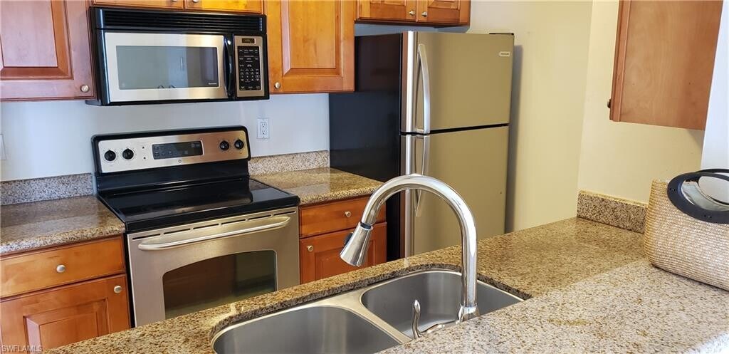 Newly renovated one bedroom + one den condo. New Kitchen, all new appliances. Gated community. Ready for occupancy. Screened lanai. Top/second floor with vaulted ceilings. New kitchen with quartz countertops. All new appliances. One year lease. Includes Fridge, Stove, Microwave, Dishwasher, Washer & Dryer. Includes parking ($25 decal fee). Central Air Conditioning and water included. Electricity is the responsibility of the tenant. No smoking in the unit. Deposit of $1000 to be held for the duration of the tenancy and returned in full if no damages upon vacating. Available for immediate occupancy, upon condo association approval ($100 application fee). Features of Complex: On site management. Gated community. Pools, spa. Gym. Playground. Tennis court.