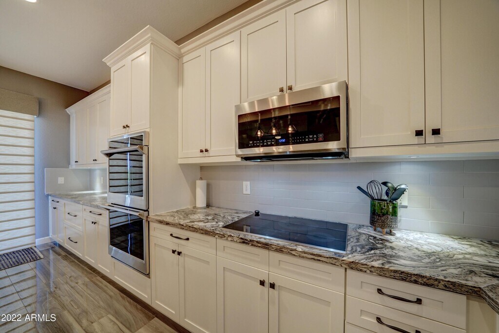 Gorgeous Mountain View. 2 bedroom plus office, 2.5 bath townhome features remodeled light and bright kitchen with all new Kitchen Aid appliances, quartz counters, new flooring throughout, fresh paint, fireplace, open floorplan, downstairs office/den. Remodeled bathrooms with Toto toilets gorgeous showers, counters and cabinets, nice size patio plus balcony, east facing back. Community offers heated pool and spa, bbq area, workout facility, walking/biking paths, golf course, gated and conveniently located to the 101, Dc Ranch, shopping, restaurants, fabulous location. 2 car garage with extra storage. Come see today!