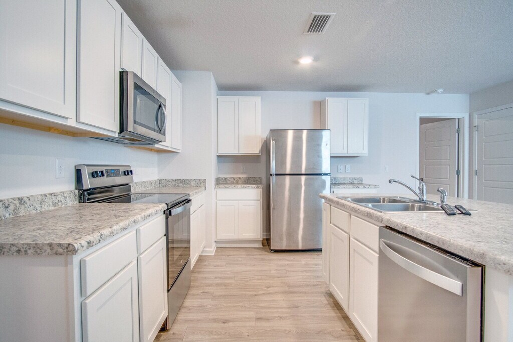 NICOLE ST. AUBINNewer construction 3/2 home in the Ashland Manor subdivision in North Pensacola off 9 Mile Rd. This home features an open-concept layout with wood-look flooring throughout the main living areas and a kitchen equipped with all stainless steel kitchen appliances, plenty of cabinets, and a large island with bar seating. The carpeted primary bedroom includes a private ensuite bathroom with a double sink vanity, walk-in shower, and walk-in closet. Two additional carpeted bedrooms share a full bathroom with a tub/shower combo. A covered back porch overlooks the unfenced backyard. Pets are accepted upon owner approval with a $250 non-refundable pet fee per pet. Residents are required to have renter liability insurance, which can be added for $11.95/month, or you can opt into the Resident Benefits Package (RBP) for $45/month, which includes renter liability insurance, HVAC air filter delivery, and on-demand pest control. Ready for move in!