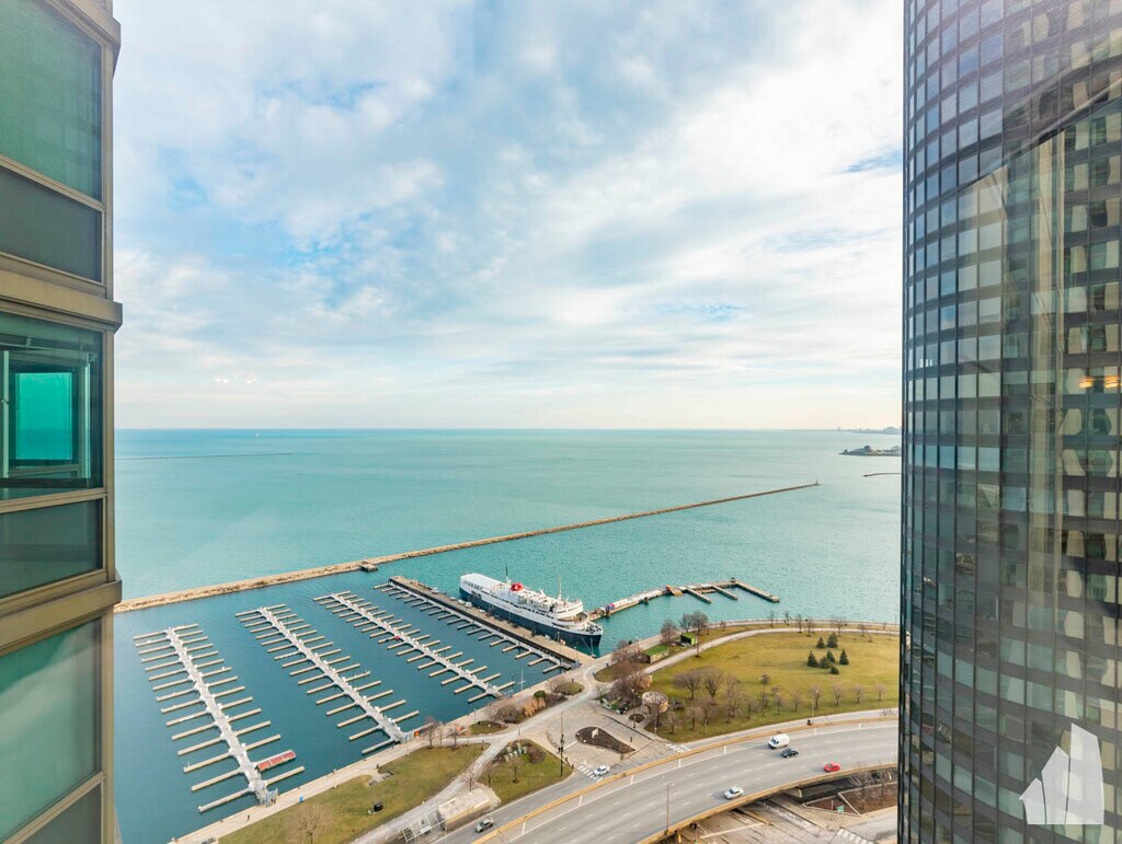 Enjoy iconic lake and harbor views from this beautiful 2-bedroom, 2-bath residence at Parkshore Condominium in Lakeshore East. This thoughtfully designed home features floor-to-ceiling windows, fresh paint, and brand-new carpeting throughout. The split-bedroom layout offers exceptional privacy, with en-suite baths for both bedrooms. Each bedroom easily accommodates a king-size bed, and one includes a generous walk-in closet. The expansive 30’ x 20’ living area provides ample space for both living and dining, offering flexibility to suit your lifestyle. The unit is equipped with in-unit laundry, a dishwasher, and a large kitchen, and includes all utilities except electric—a value of $150+ per month. Parkshore is a full-service luxury building offering premier amenities, including a 56th-floor indoor pool with stunning 360-degree lake and harbor views, a day spa, state-of-the-art fitness center, tennis courts, party room, and sundeck. Residents also enjoy the peace of mind provided by 24-hour door staff. Step outside to immediate access to the Lakefront Trail, Maggie Daley Park, and Millennium Park. Everyday convenience is unmatched with Bockwinkel’s grocery store located within the complex and Mariano’s just half a block away. Rental and guest parking options are available. Owner move-in fees: $500 (owner) + $650 (building association). Convenience, comfort, and breathtaking views—this home truly has it all.*Mandatory Resident Benefit Package additional $40.00 per month; includes renters insurance, positive credit reporting for on-time rental payments, identity fraud protection and more. Presented & Professionally Managed by Fulton Grace Realty, Chicago, IL