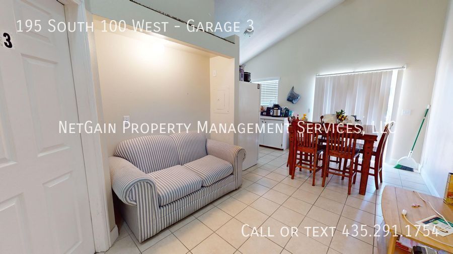 Female Private furnished room with private bath, shared kitchen and living room 195 South 100 West - Garage 3 Rent $450 month $35/month Student Life Fee Deposit $450 No smoking/vaping No pets Renters insurance required. To view the virtual tour click here: