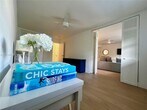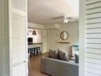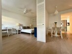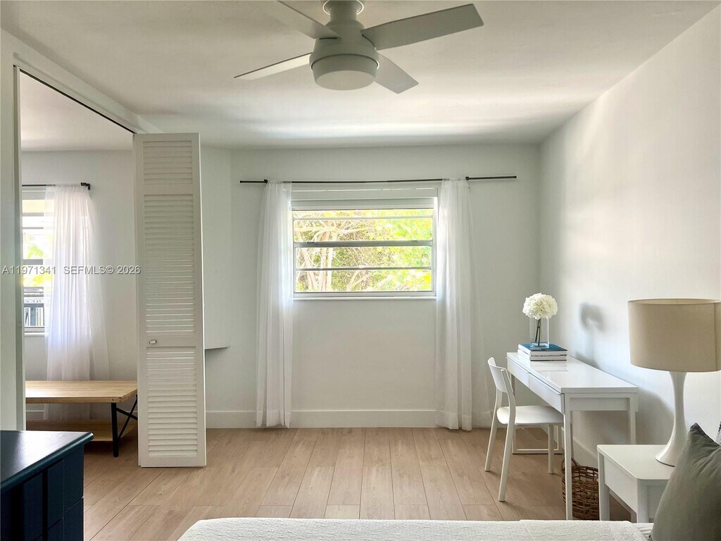 Stylish and inviting corner lanai in a quiet 10-unit boutique building, perfectly located in the heart of Key Biscayne. This fully furnished residence combines contemporary finishes with a warm, homey feel, featuring white marble floors, Brazilian quartz countertops, and custom cabinetry. Large windows flood the space with natural light, while the den with a queen Murphy bed offers the flexibility of a second bedroom. Street-level entry gives it the comfort and privacy of a home. Enjoy FOB beach access just a 5-minute walk away, plus a pool, assigned parking, and free laundry. Smart lock with camera for fingerprint, code, key fob, or app entry. Pet friendly. Available for short-term stays of 3 months or more. MLS # A11862838