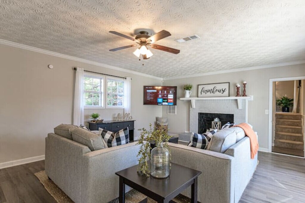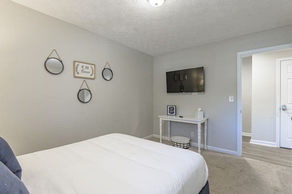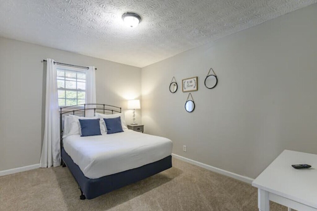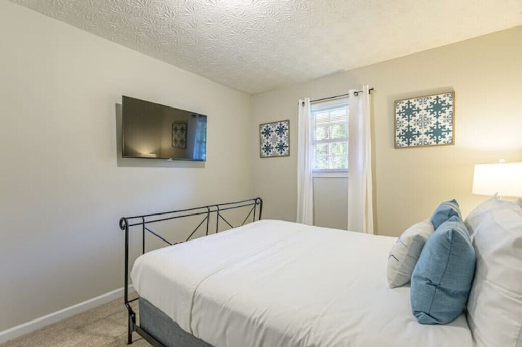 Step into comfort and charm at this updated 1960s ranch-style 4-bedroom home, just 1 mile from historic downtown Cartersville! With quick access to I-75, LakePoint Sports Complex, and a short drive to Kennesaw State University, Truist Park, and Downtown Atlanta, this home is perfect for both short visits and extended stays. Prime Location Highlights: 1 mile to Downtown Cartersville Close to LakePoint Sports Complex Easy access to Kennesaw State University Convenient to Truist Park & Downtown Atlanta Minutes from I-75 Inside the Home: Private master suite set apart from the main living areas 3 additional guest bedrooms - all with Smart TVs, blackout shades, and fresh linens Smart TV in the front living room for extra entertainment Kitchen stocked with cookware, kitchenware, and cooking basics Dining area seats 6 in a naturally lit space Full laundry room with washer, dryer, folding table, and ironing board High-speed WiFi throughout Welcome tray with snacks & Keurig K-Cups Outdoor Features: Private courtyard & partially fenced backyard - great for pets & outdoor relaxation Propane grill for year-round cookouts Horseshoe driveway + 2-car garage with ample parking Included With Your Stay: All utilities, WiFi, lawn care & pest control Family & pet friendly (pet fees apply) Fully move-in ready - no hidden fees 3D Matterport virtual tour available upon request Booking Discounts: 5% off stays 7+ nights 10% off stays 30+ nights Perfect For: Insurance-displaced guests Homeowners in transition Sports families or business travelers Long-term stays & relocations Good to Know: Non-smoking property No events permitted Pets welcome with applicable fees Security Requirements: TRUVI ID verification - link sent after booking Photo of the card used for payment (must match reservation name) required before check-in Send to +1 or (Confidential info can be hidden - no full card number required) Book your stay in this charming Cartersville gem - designed for space, privacy, and convenience. Ask us for the 3D virtual tour to explore before you book!