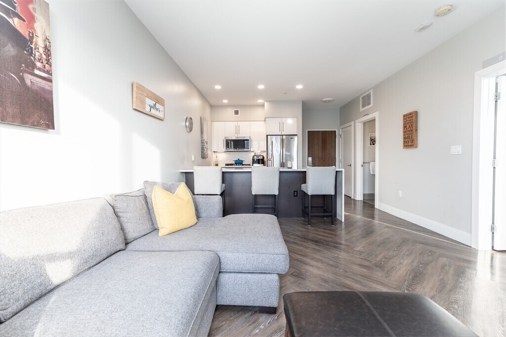 Meticulously maintained and thoughtfully designed,this spacious 1bed,1bath home offers an open-concept kitchen and living layout with condo-quality finishes throughout. The chef’s kitchen features a large island with seating for 4,quartz countertops,high-end appliances,and abundant cabinet space—perfect for both everyday living and entertaining.The bright and versatile living area comfortably fits a large sectional and home office setup. The generously sized bedroom accommodates a queen bed,dresser,and even a small desk,and includes a custom-built walk-in closet for ample storage.Additional highlights include central AC,a common roof deck with grill,lounge chairs,and hightop dining table for 8—ideal for entertaining. Garage parking and bike storage are also included.Located just steps from American Provisions,Tavolo,Ashmont T Station,and the shops and restaurants of Adams Village,this home offers the perfect blend of comfort,style,and convenience. MLS# 73436572