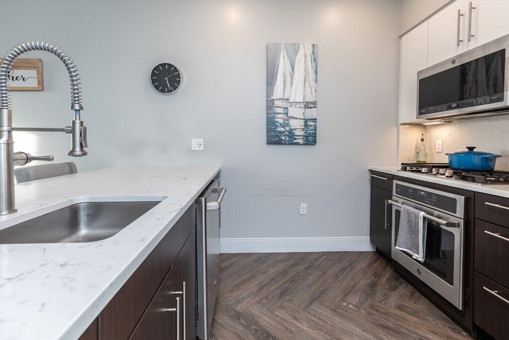 New price! Modern newer construction condo with garage parking available for immediate occupancy! This 2 bed/2 bath unit has it all including hardwood floors throughout,stainless steel appliances w/quartz counter-tops,large kitchen island,central heat and AC and in-unit washer/dryer. Both of the bedrooms are spacious with great natural light and plenty of closet space. Very convenient location across the street from the Ashmont Red Line T Station and close to many area amenities including restaurants,markets and public transportation. American Provisions market is located at the corner of this building. The building has a common roof deck and a shared patio. Come see for yourself! MLS# 73429928