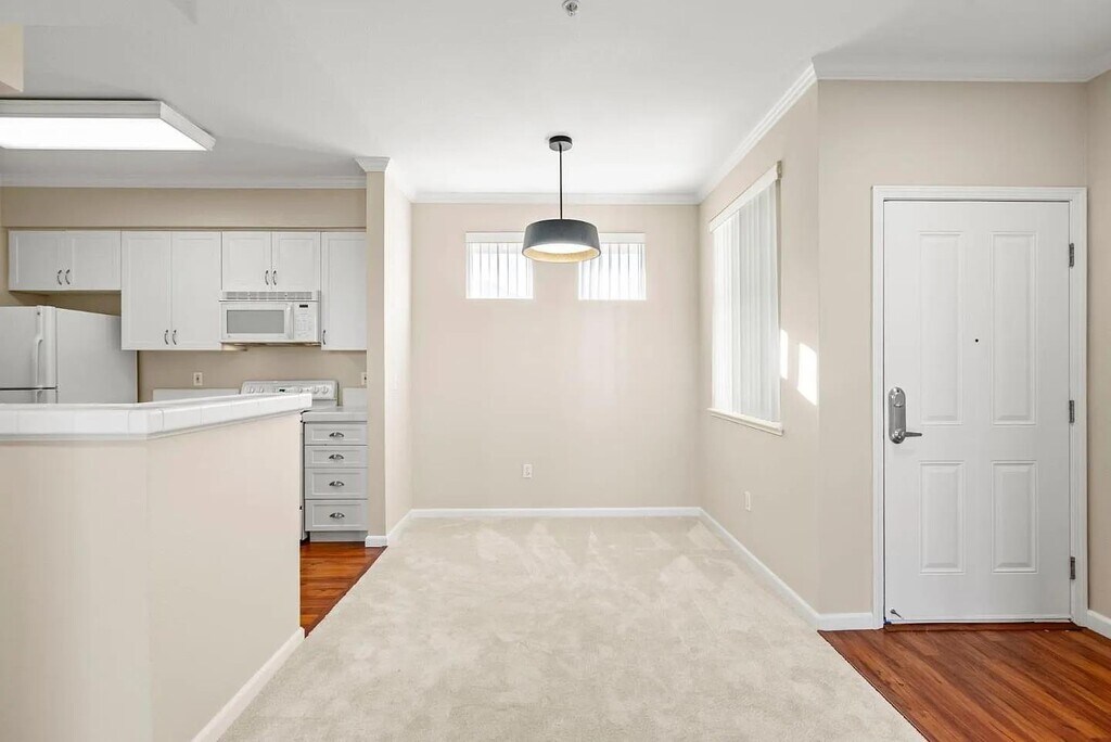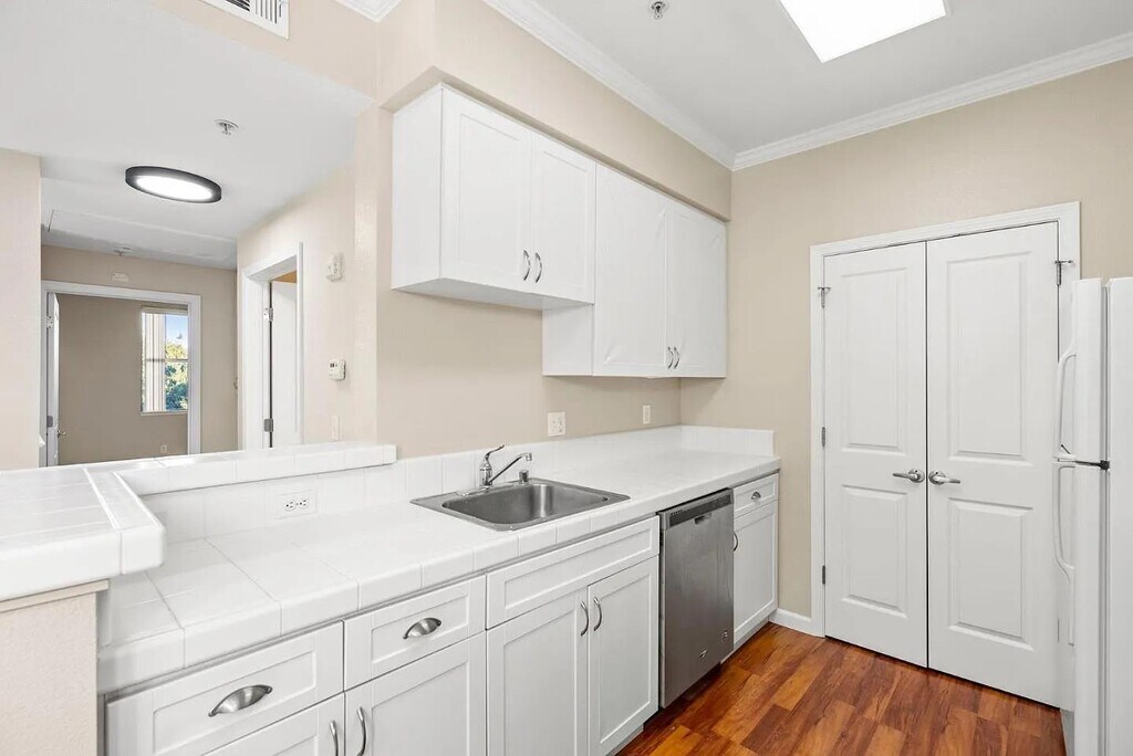 Chic 1‑bed, 1‑bath Woodland Creek condo with 776 sq ft, open layout, new paint and carpet, in‑unit washer/dryer, walk-in closet, and private balcony with Bay views. Includes 2 parking permits (1 assigned garage, 1 common), plus clubhouse, pool, hot tub, and fitness center. Conveniently located near Palo Alto, Stanford, shopping, tech hubs, and major highways. Pet-friendly. This stylish 1-bedroom, 1-bath condo offers 776 sq. ft. of open living space with serene Bay views. Perched on the 3rd floor of Building 3, it showcases new paint and carpet, updated lighting, soaring ceilings, tile countertops, and a well-equipped kitchen with dishwasher, oven/range combo, and microwave. Enjoy modern conveniences like in-unit laundry with pantry space, central A/C, a spacious walk-in closet, and a large private balcony. Parking is easy with 2 permits—one assigned spot in the secure garage with elevator access, plus one in the common lot. Community amenities include a clubhouse, fitness center...