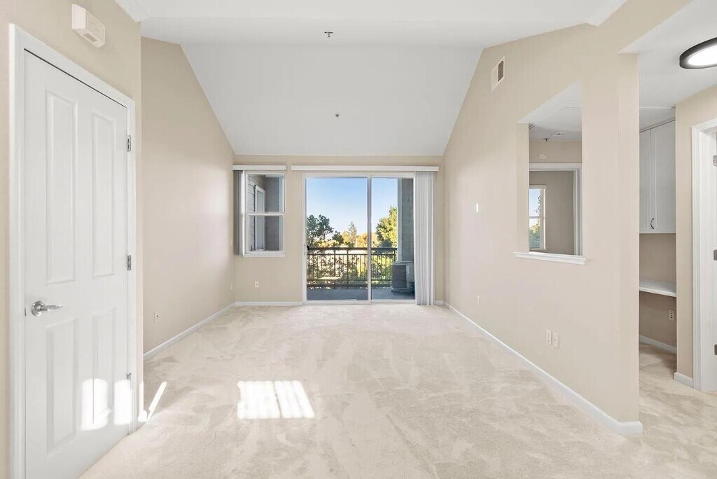 Luxury living, moving conditions,1 bedroom, 1 bath on top floor. Freshly painted, open floor plan with high cathedral ceiling with private balcony, built in desk for office space, in unit washer and dryer, and new fridge. One assigned parking, Swimming pool , hot tub and gym. Within minutes to Palo Alto, Stanford, 101, walk to grocery and new Embarcadero shopping plaza.