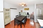 Move right into this beautifully maintained top-floor apartment in the heart of Ridgefield Park. This bright and spacious 2-bedroom home features an open living and dining area with sliding doors that lead to your private balcony ideal for morning coffee or evening relaxation. The updated kitchen offers ample counter space, modern cabinetry, and a functional layout perfect for everyday living. Both bedrooms are generously sized with great closet space, and the full bathroom is well-kept and freshly updated. This unit also includes air conditioning, an assigned parking space, and convenient on-site laundry on each floor. Residents enjoy access to the building's outdoor pool, patio, and BBQ area, creating a comfortable lifestyle with excellent amenities. Perfectly located near major highways, NYC transportation, shopping, dining, and parks, this home offers outstanding convenience and value. Cats allowed. Available furnished only.