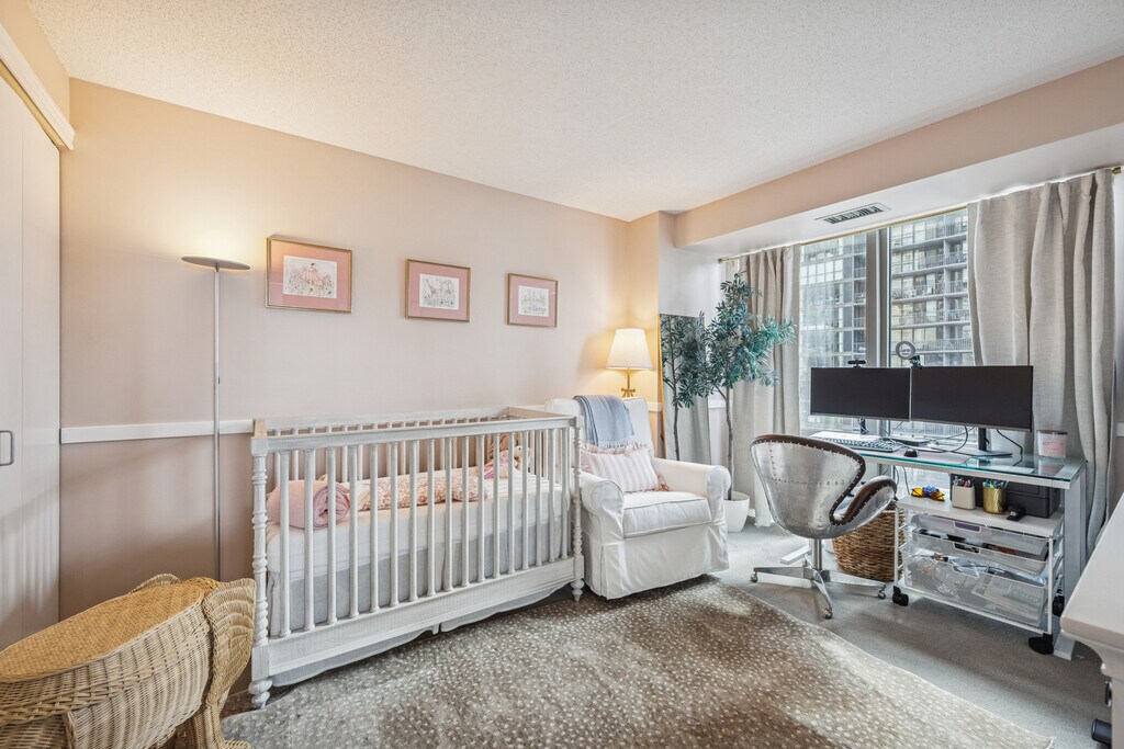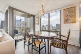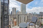 FULLY FURNISHED CONDO. Highly Sought-After High-Floor Corner One-Bedroom with Balcony! This spacious and bright residence features floor-to-ceiling windows in the large living room, offering sweeping views and abundant natural light. The open-concept white kitchen includes Whirlpool appliances and a granite breakfast bar, perfect for entertaining. Enjoy the convenience of in-unit laundry and a generous walk-in closet in the bedroom. Heat, A/C, and basic cable included! Full-amenity building with 24-hour door staff, penthouse sundeck, fitness center, on-site dry cleaners, and bike storage.