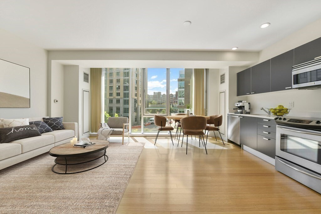 Stephen Higdon2 Earhart St #409 | 1 Bed + Den | $3,300 | Available Now Bright and spacious one-bedroom + den at the Sierra + Tango Condominiums in East Cambridge. The home features floor-to-ceiling windows, hardwood floors in the living area, and a carpeted bedroom for added comfort. The kitchen is open to the living space and includes full-size stainless appliances, plenty of cabinet storage, and stone countertops. The den offers flexible use as a home office or guest room. Central A/C, in-unit laundry, and generous closet space add everyday convenience. Located in a professionally managed elevator building with 24-hour concierge and on-site management. Steps from the Green Line at Lechmere, close to Kendall Square, MIT, and Cambridge Crossing, with easy access to major highways. Garage parking may be available for rent.