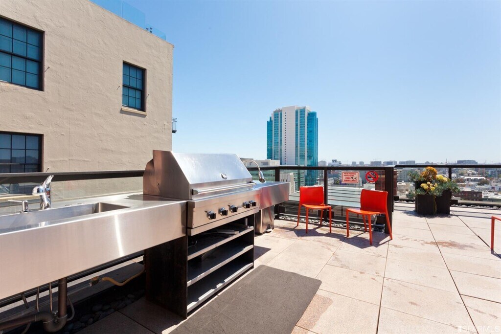 Experience urban living at its finest in this beautifully renovated, turnkey, minimally furnished 1-bedroom live/work loft in the heart of Mint Plaza. Situated in a circa 1903 historic warehouse building, the space blends raw industrial charm with sleek, modern finishes. The open plan living/dining area features expansive warehouse-style windows, providing ample natural light and impressive city views, and 11 ft ceilings. Polished concrete floors and exposed concrete walls underscore the loft's architectural heritage. The gourmet chef's kitchen boasts custom cabinetry and high-end appliances including a Sub-Zero refrigerator, Miele oven, microwave and dishwasher anchored by a large island, ideal for entertaining. In the bedroom, you'll find a generous custom closet system, and the large bathroom features a substantial stainless-steel soaking tub. Located in a vibrant, historic loft-conversion community, Mint Plaza puts you steps from high-end retail, restaurants and public transit (including Muni & BART). Walk Score of 99 and Transit Score of 100.