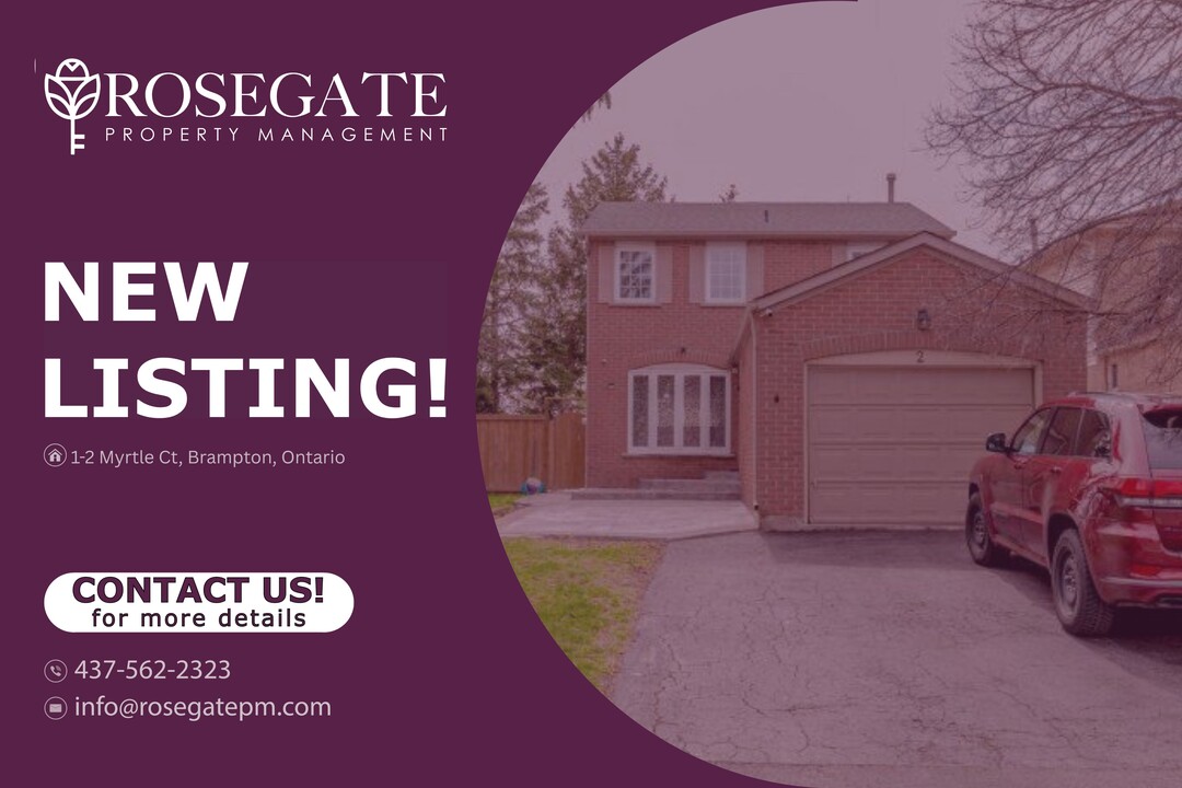 Corner 3-Bedroom Semi-Detached Home with Private Garage & 2 Parking – Brampton Welcome to 1-2 Myrtle Ct, Brampton — a spacious corner semi-detached home offering approximately 1,700 sq. ft. of well-designed living space. This property features 3 bedrooms and 2.5 bathrooms, making it ideal for families or professionals seeking comfort and functionality in a desirable neighbourhood.The home offers a bright and practical layout with generous living and dining areas, well-sized bedrooms, and a primary suite with a private ensuite bath. As a corner unit, the property benefits from additional natural light and an open feel.Enjoy a welcoming front porch, a private backyard, and the convenience of a private garage plus an additional parking space (2 total).Located close to schools, parks, shopping, and major routes. Professionally managed and ready for occupancy. Schedule your viewing today.