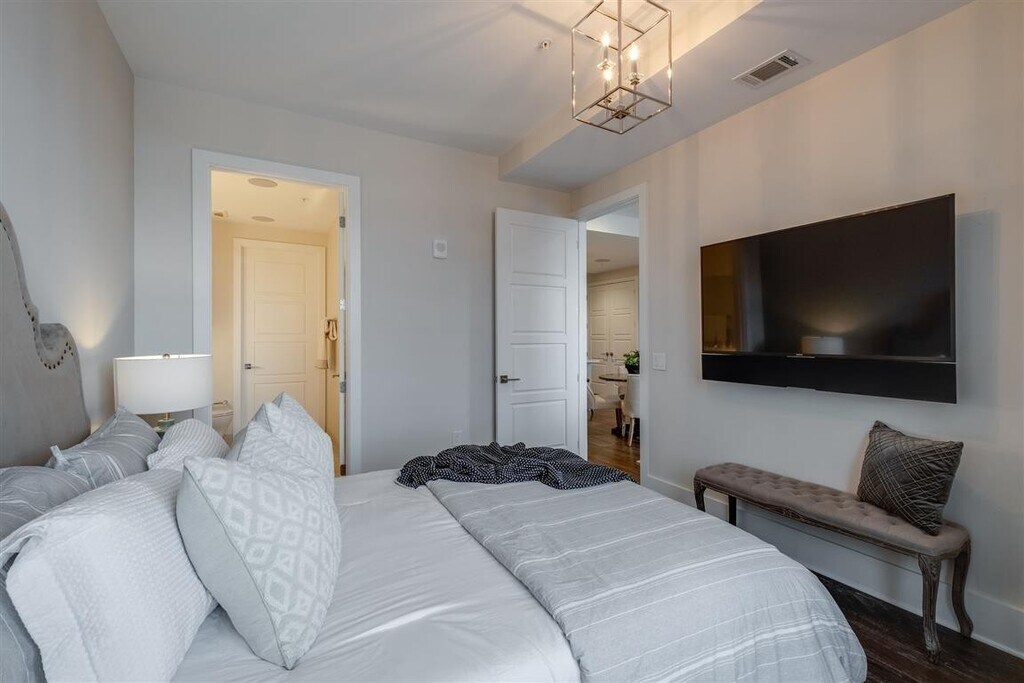Experience the epitome of upscale urban living at Executive Luxury Living at City Lights, located in the vibrant heart of Nashville, TN. This high-rise downtown condo offers two spacious bedrooms and two full bathrooms, perfect for those who appreciate a blend of comfort and sophistication. The condo is adorned with designer finishes and chef's dream kitchen. The Sonos Distributed Audio System and Lutron Window Shades add a touch of modern convenience. The building's amenities are designed to cater to your lifestyle needs. Enjoy the company of your furry friends at the dog park, or unwind at the resort-style heated pool. The community rooftop terrace offers panoramic views of the city, while the fully equipped fitness center and yoga studio cater to your wellness needs. The 24-hour security and concierge service ensure your peace of mind, and the community lounge area and clubroom provide spaces for socializing and relaxation. Situated in the SoBro District, this condo places you in the heart of Nashville's entertainment and dining scene. Welcome to Executive Luxury Living at City Lights, where luxury meets convenience in the heart of the city. Deposit and $125 admin fee due upon approval. Pets welcomed, with owner's approval and pet fee. All applicants will be asked to register with PetScreening during the application process, fees may apply. No self-showings.