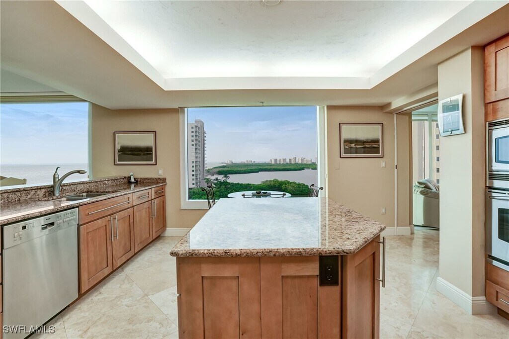 Welcome to a rarely available and beautifully appointed 8th floor residence in the popular Beach House at Naples Cay. Located right on the Gulf of Mexico,Beach House 803 is on the northwest corner,and its floor to ceiling glass walls offer dramatic views of the beautiful sunsets over the Gulf,as well as long-range views of the mangroves of Clam Bay. This 2-bedroom,3-bathroom coastal retreat offers the ultimate in beachfront living,in the gated and private Naples Cay community tucked between the high-end Pelican Bay and Park Shore neighborhoods. Step into a light-filled open floor plan with walls of glass that frame endless gulf views and captivating sunsets. The expansive living and dining areas flow seamlessly onto a private balcony – perfect for entertaining or simply unwinding with the sound of the waves. The gourmet kitchen features sleek cabinetry,granite countertops,and a breakfast bar. The spacious primary suite includes a walk-in closet,luxurious en-suite bath with dual vanities,and direct access to the terrace. The guest bedroom offers privacy and comfort with its own balcony and bath. This unit includes two assigned parking spaces,one in a private garage and the other in a covered parking deck,both connected to the Beach House building. Located directly on the sand,Beach House at Naples Cay is a boutique high-rise with only 33 residences,offering resort-style amenities including a pool,private beach access,tennis courts,fitness center with sauna and steam room,walking park,on-site management,and garage parking. Just minutes from Venetian Village and Waterside Shops,this residence combines tranquility with access to world-class dining,shopping,and entertainment. If you’re looking for a seasonal,or longer,getaway,Unit 803 is your front-row seat to the best of Gulf-front luxury living.