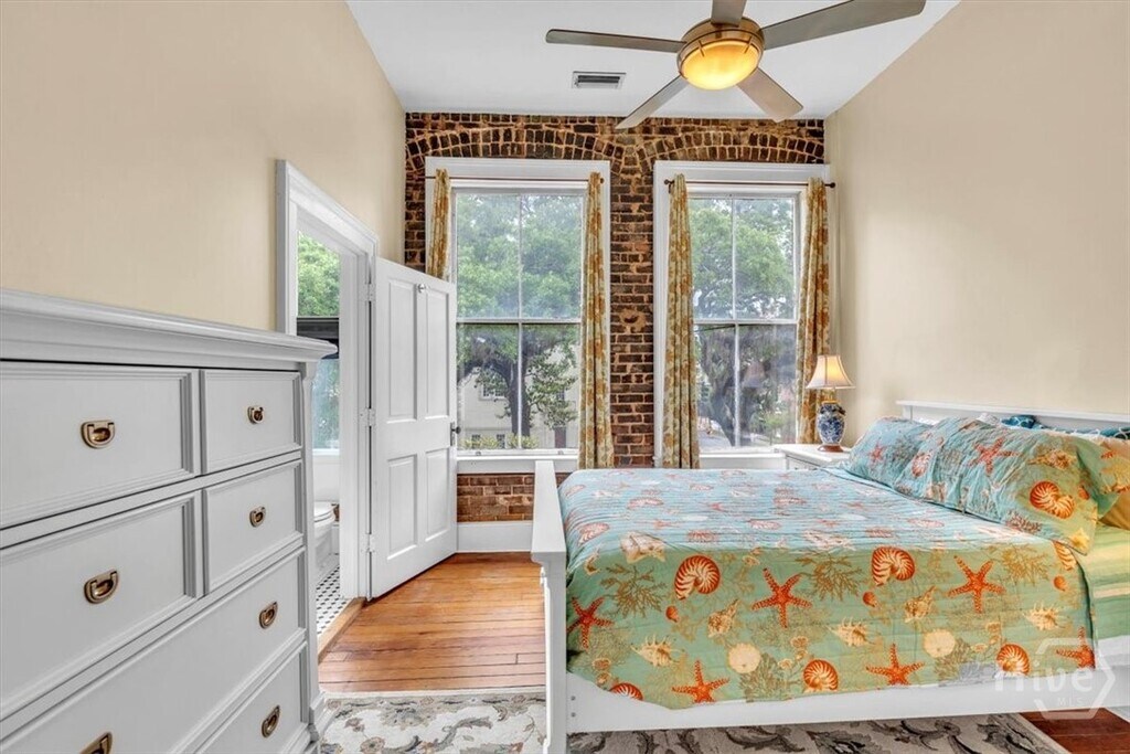 Spacious, fully furnished one bedroom one bathroom condo blocks from Broughton and steps away from the best restaurants/bars in Historic Savannah. It has soaring 18 foot ceilings, exposed brick walls and is completely renovated. A stones throw from The Collins Quarter, Alligator Soul, Alley Cat Lounge and the Broughton St. shopping district. Tired from strolling around downtown.. relax in the huge living room and watch TV on the 75” flat screen. Bedroom with king memory foam mattress is in back of building so it’s very quiet. No pets allowed in this rental.