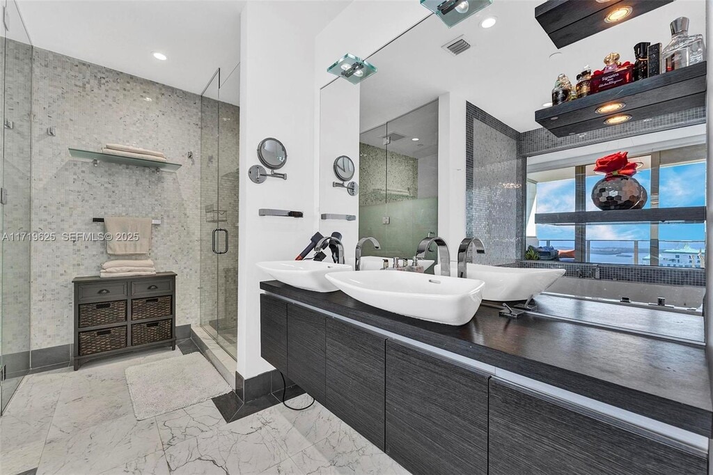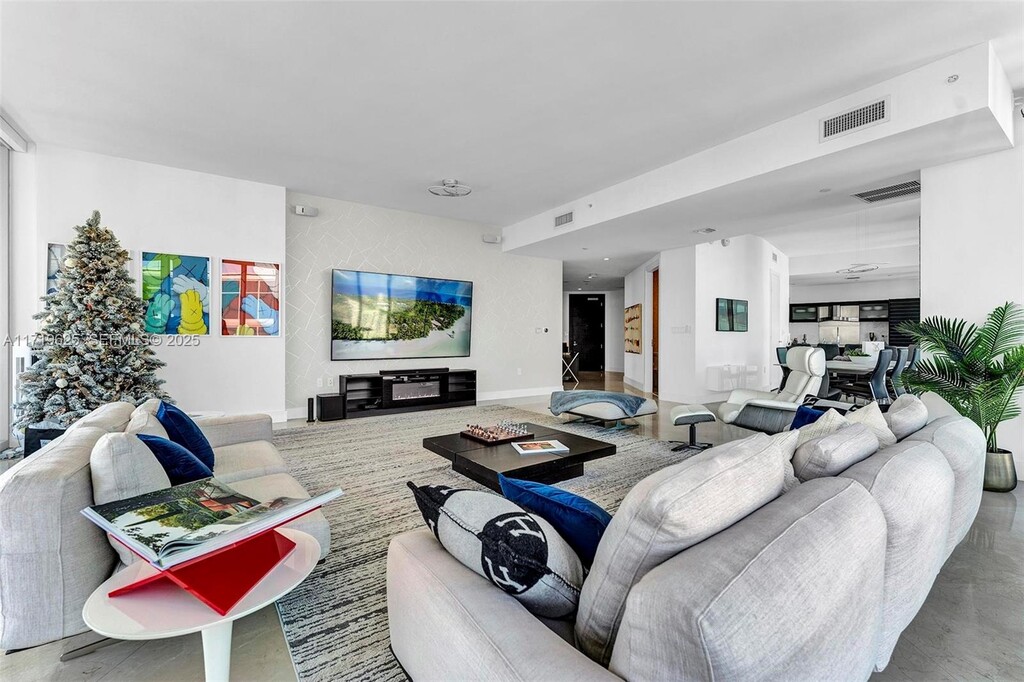 Spectacular Miami Penthouse downtown on the river. Corner residence features 3 bedrooms with en-suites, 10ft ceilings, an open floor plan with gorgeous water views, and balconies in every room. Kitchen has Calacatta marble, Italian finishes, SubZero and Miele appliances, motorized blinds, and 3 fireplaces with TVs in every room. Marble and wood flooring shine under the custom modern light fixtures. The living room features a 100' TV with a Bose home theater. 75' TV, a Bose soundbar, a walk-in closet, and an oversized soaking jacuzzi tub. Live the Epic lifestyle in the heart of Miami, steps away from all the hot spots, with in-room dining service and resort-style amenities, including 2 restaurants, gym, lounge, pool, spa, Zuma restaurant, and a full-service marina. MLS # A11719625