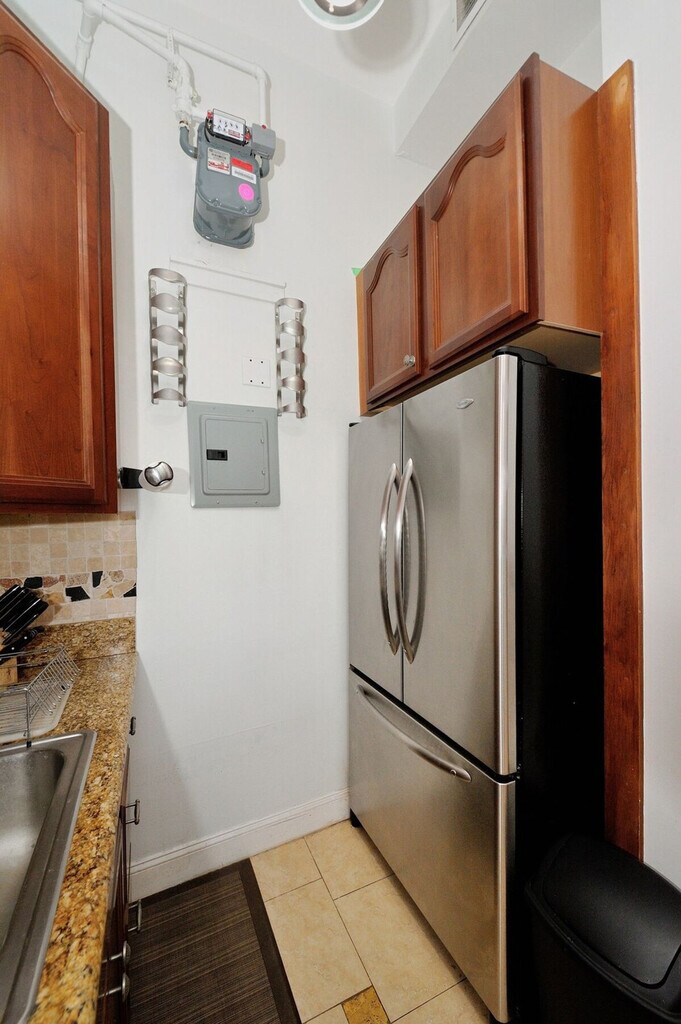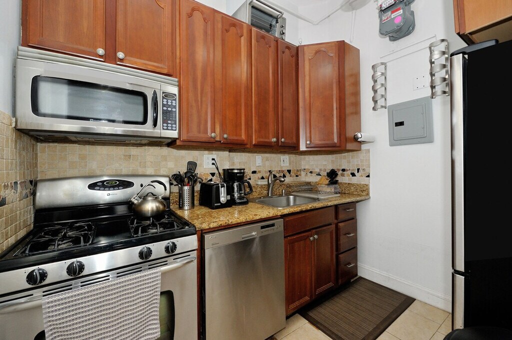 Feel at home in this charming Upper West Side 1-bedroom, 1-bathroom furnished apartment. This centrally located home is on the second floor of a renovated historic brownstone townhouse, two flights up. This spacious, sun-flooded apartment features high ceilings, hardwood floors, large windows, and a balcony facing a private garden. The living area comes complete with a queen-size sofa bed and a state-of-the-art media center with a 54” HDTV and a Wi-Fi router. The bedroom includes a queen-size bed, a dresser, and two large closets. The kitchen features granite countertops and brand new stainless steel appliances, including a microwave and dishwasher. It is also fully stocked with a toaster, coffee maker, and a water kettle. The European-tiled bathroom has a bathtub and shower, extensive storage below and above the sink, and a toilet. The living room and bedroom have their own separate remote-controlled, quiet AC/heating units. A coin-operated laundry room is located in the basement. Wired and Wi-Fi dedicated high-speed internet connection is available. This apartment is located on a tree-lined street, steps from Central Park West.