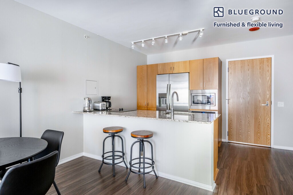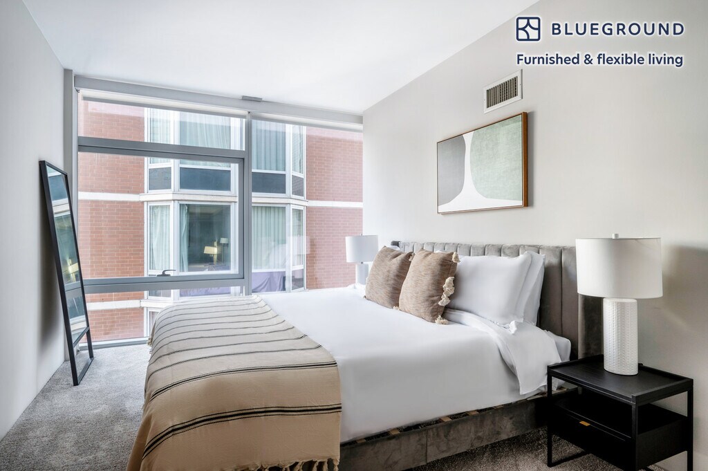 Discover the best of Chicago, with this one bedroom apartment in Streeterville with high floor views over the city. It’ll be easy to simply show up and start living in this furnished apartment with its fully equipped kitchen, living room, and our dedicated, on-the-ground support. (ID #CHI997) The advertised rate of $2,340/month is the lowest available price, based on a 1 month(s) and 24 day(s) stay with a move-in date of March 1, 2026. If you’re looking for a 1-year stay, the rate is $3,000/month. Rates vary depending on the duration of stay, season, and other parameters. For exact pricing and additional pricing components, please visit our website and enter your desired move-in and move-out dates. The rate is applicable when billed upfront; it can be higher if billed in multiple payments. Brokers are welcome to reach out. Were you looking for an unfurnished lease? Try Blueground instead and upgrade from unfurnished to furnished living: - Furnished at rates comparable to unfurnished - No setup or furniture costs - save thousands - Move-in ready - save time, just bring your suitcase Designed with you in mind As with any Blueground apartment, you’ll find a thoughtfully designed space complete with beautiful furniture and a fully equipped kitchen in this one bedroom property. And, thanks to our superior quality mattresses, luxury linens, and towels, you can relax knowing you’ll always feel comfortably at home. When you’re ready for some fun, you can take in the Chicago vibes or bring the entertainment to you with the premium wireless speaker or smart TV. This apartment also offers in-floor laundry. Sleeping arrangements King Bed, 70.8in/180cm Amenities Building amenities unique to this one bedroom apartment include an on-site: - Doorman - Dryer of floor - Elevator - Swimming pool - Washing machine on floor - Lounge - Pets allowed - Sauna Arrival and ongoing support The entire apartment is yours to enjoy! Throughout your stay, you’ll have access to our Client Experience team through the Blueground App. You can schedule additional cleanings, submit maintenance requests, and view our neighborhood recommendations with just a few taps. We’ll share all details upon confirmation of your stay. Ideally Located This furnished rental is located in Streeterville, only a 5 minute walk from The Loop. One of the fastest-developing neighborhoods in Chicago, Streeterville extends out into Lake Michigan and attracts a blend of young professionals, students, and tourists. A plethora of amenities and activities exist for every lifestyle. From Navy Pier activities to luxury shopping on Michigan Avenue, it is a walkable community with easy access to entertainment. Other things to note Building amenities may have an extra cost. This Blueground apartment has flexible lease options, allowing you to book it for one month, a year, or more. Pets are welcome, though weight limits and breed restrictions apply and may incur fees. We take great pride in ensuring every photo displayed is shot in our own units with our actual furnishings. That said, we regularly refresh our decor and furniture arrangement, which may differ from what’s pictured. Also note - This is a guarded building equipped with a doorman/concierge at all times - On-street parking near the building is not allowed [SI]