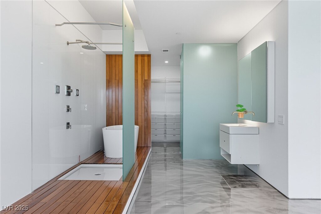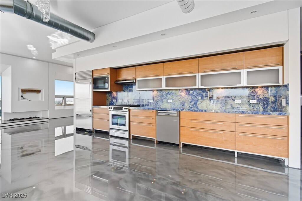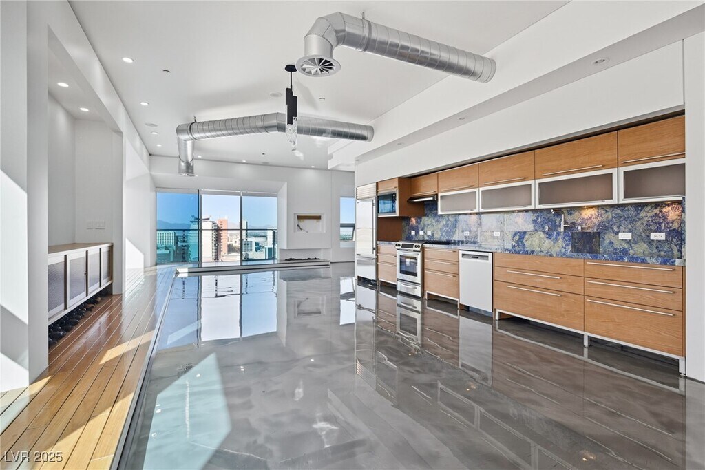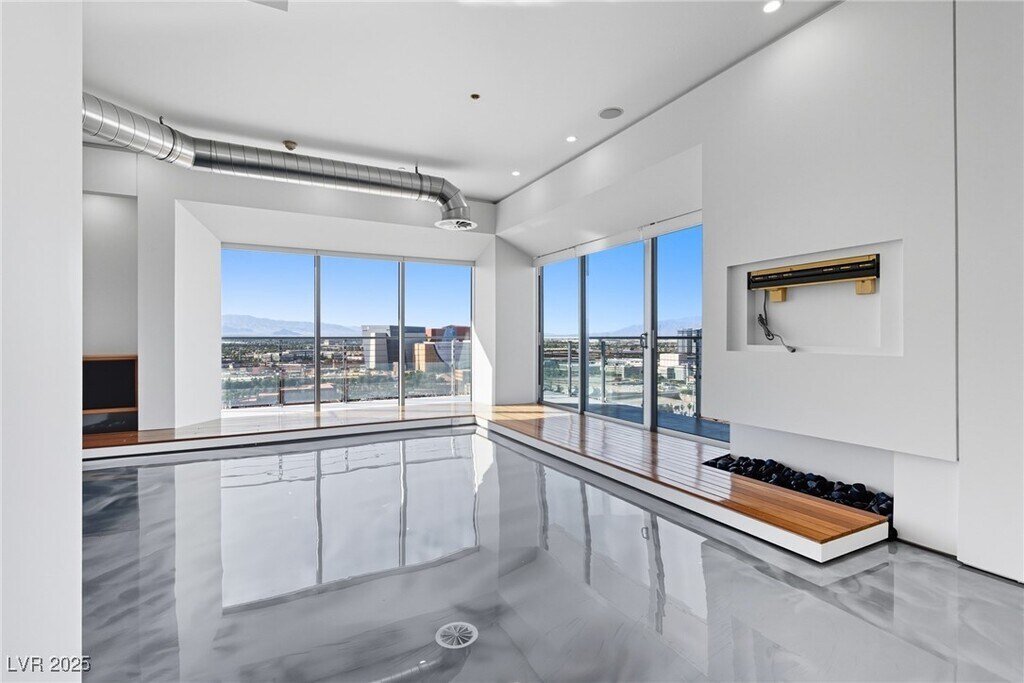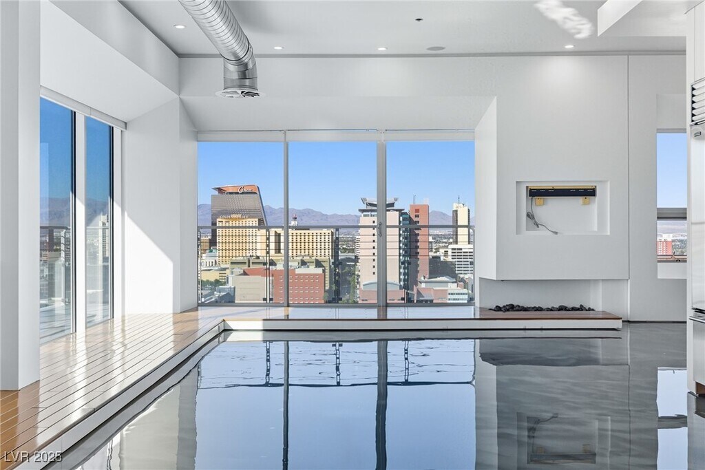 Perched on the 18th floor, this corner residence offers a refined blend of modern sophistication and urban energy, set within the iconic Newport Lofts high-rise. This prestigious residence showcases soaring ceilings, sleek contemporary finishes, and expansive floor-to-ceiling windows that frame sweeping views of the city skyline and surrounding mountains. Designed for those who appreciate both elegance and convenience, the home features an open-concept layout that seamlessly balances style and functionality. Residents enjoy exclusive access to world-class amenities, including a rooftop pool and spa, fitness center, and sky lounge, all within steps of the vibrant Arts District and moments from the Las Vegas Strip.