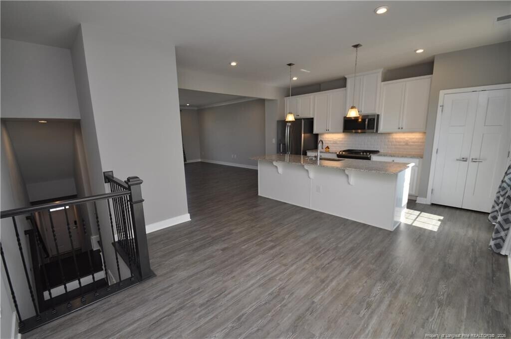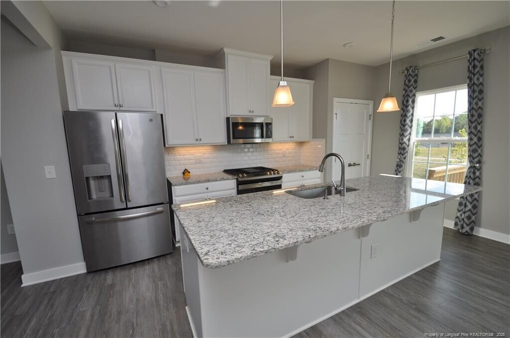 ABOUT THIS HOME This stunning and immaculate end unit townhome is available for immediate occupancy and sure to please! Its interior is filled with natural light, hardwood floors and high-end finishes throughout. Being an end unit means this home not only offers enhanced privacy, but also additional windows as well as open spaces on two sides. Enter via your covered front door and you're greeted by a lovely foyer that leads up to the second floor living space. This area is the epitome of open concept and is truly beautiful. The family room occupies the front half and includes two large picture windows, hardwood floors, recessed LED perimeter lighting and crown molding. The kitchen is the heart of 200 Misty Pike Drive and it is anchored by a massive granite-topped island with a deep bowl stainless undermount sink as well as an integrated seating area. Behind the island you'll find a double door pantry as well as striking white cabinetry, a built-in microwave, French door refrigerator, a slide-in gas oven, granite counters, subway tile backsplash and under-cabinet lighting. An adjacent dining area is perfectly proportioned and has easy access to a massive elevated deck overlooking a lovely open area with a walking trail. Take a quick jaunt upstairs where you'll find all three bedrooms as well as a conveniently-located laundry room (with washer and dryer included for resident's use). The owner's suite features a tray ceiling with crown molding and a ceiling fan, two large windows, a spacious walk-in closet and a luxury bathroom showcasing tiled floors, an elevated satin finish marble-topped vanity with dual sinks and an elegant walk-in shower with glass door and a transom window. Bedrooms #2 and #3 are both surprisingly large and offer ample closet space as well as easy access to a full hall bathroom. Before finishing your tour, be sure to visit the first floor living space - this area is not easily found in townhomes and offers that additional room that we all seem to be in need of these days! It could be put to use as a home office, exercise area, study, rec room, media/game room; the possibilities are endless. This room also provides direct access to the fully finished and insulated 2 car garage. PROPERTY FEATURES Availability: Available for immediate occupancy Lease Terms: 12 and 24 month lease terms available. Pet Friendly: Owner will consider 1 dog 30# or smaller OR 1 neutered/spayed cat. $300 additional security deposit Outdoor Living: This end unit townhome offers a surprising amount out adjacent open space as well as a large deck overlooking a walking trail All Appliances Included: Rent includes washer, dryer and a gorgeous French door stainless refrigerator Bonus Room: Hard to find bonus room offers valuable extra living space and a multitude of use options 2 Car Garage: Fully finished and insulated 2 car garage with a correspondingly wide driveway as well as direct interior access and a side entry pedestrian door Community Amenities: Absolutely amazing community amenities all included in your rent! Indoor heated pool, outdoor pool with shade space, zero entry and community grills, an indoor gym with state of the art equipment, a gaming room with flat panel TV's and consoles, a billiard and table tennis room with arcade games, a playground, tennis and basketball courts, a putting green and in indoor golf driving range! No Yard Work: Enjoy your weekends! Rent includes all lawn and landscaping maintenance! NOTE: We do not advertise on Facebook or Craigslist. Applications must be completed at $75/adult non-refundable application fee