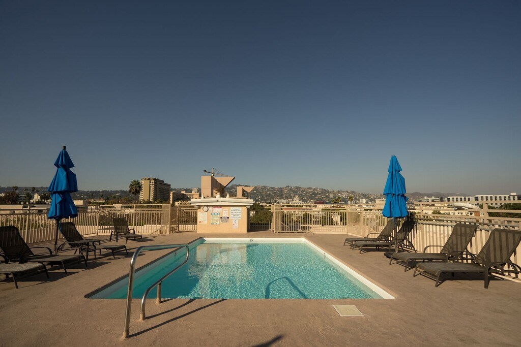 Beverly Hills Prime Location with Rooftop Pool 2 bedroom, 2.5 bathroom Central AC and Heating Stainless Steel Appliances Vinyl Flooring Throughout Gas Fireplace Laundry In Unit Onsite Manager Rooftop Pool and Spa 2 Car Side by Side Parking