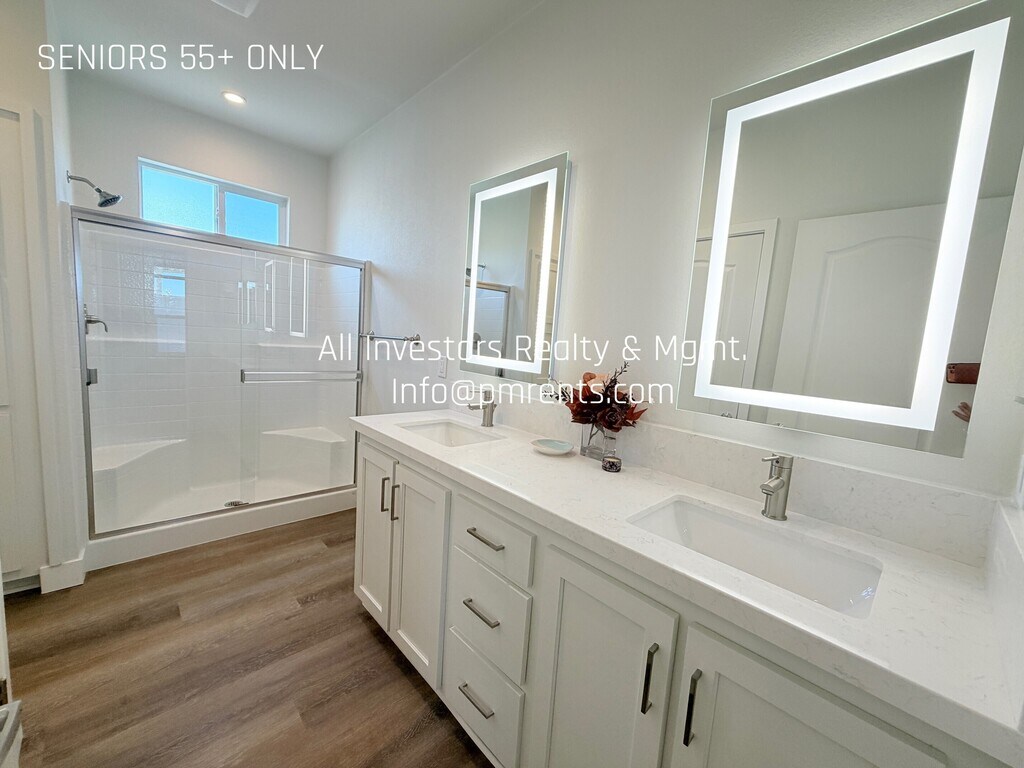 SENIORS 55+ ONLY. This is a beautiful brand new three bedroom home. Be the first to move in! This home is a spcious 1,608 square feet. This is a wonderfully open and flowing floor plan with gorgeous luxury vinyl plank flooring, upgraded appliances, quartz counters and an abundance of cabinet and counter space. The vaulted ceilings allow the natural light to pour in through the numerous large windows. The large primary bedroom includes a walk in closet. The attached ensuite features dual sinks, upgraded lighting and storage. The laundry room includes a washer and dryer for your convenience. This home has AC to keep you comfortable in the summer. The driveway can easily accomodate two vehicles. One small pet may be permitted. Non smokers only. Tenant walls gas/electric/water/trash. Located in the highly desirable Rancho San Luis Rey Mobile Home Park. Enjoy a quiet park with community pool, spa, tennis, shuffle board, possible RV parking, clubhouse and get togethers! Contact All Investors Realty today for your opportunity to tour this home. Equal Housing Opportunity. CABRE #02148089.
