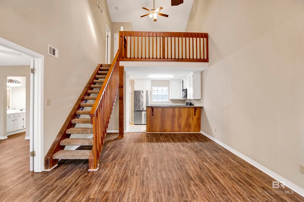 Loma Alta Townhomes presents this inviting unfurnished 2BD/2BA townhome in the heart of Daphne,offering dual master bedrooms with one conveniently located downstairs featuring private balcony door access and the other upstairs,each with its own en suite bathroom. The home has been refreshed with new flooring throughout the living room,dining room,and downstairs master bedroom,creating a clean and modern feel. The kitchen is well equipped with granite countertops and a stainless steel refrigerator,while a stackable washer and dryer are included for added convenience. Additional features include a small exterior storage room,a decorative fireplace for ambiance only,and access to the community swimming pool. This pet-friendly home welcomes pets with a $400 non-refundable fee per pet and is ideally located near shopping,dining,and local amenities. Lawn service provided for your convenience. $75.00 Lease Prep Fee due prior to move in. Tenant pays all utilities. Property will be held off market up to 14 days with Property Holding Fee with approved app. Approved pets requires a $400 pet fee per pet. Renters insurance required. Loma Alta Townhomes offers a community swimming pool for your enjoyment as well. This home is pet friendly with a $400 non-refundable fee per pet. (fireplace for decoration only) $75.00 Lease Prep Fee Tenant pays all utilities. Property will be held off market up to 14 days with Property Holding Fee with approved app.