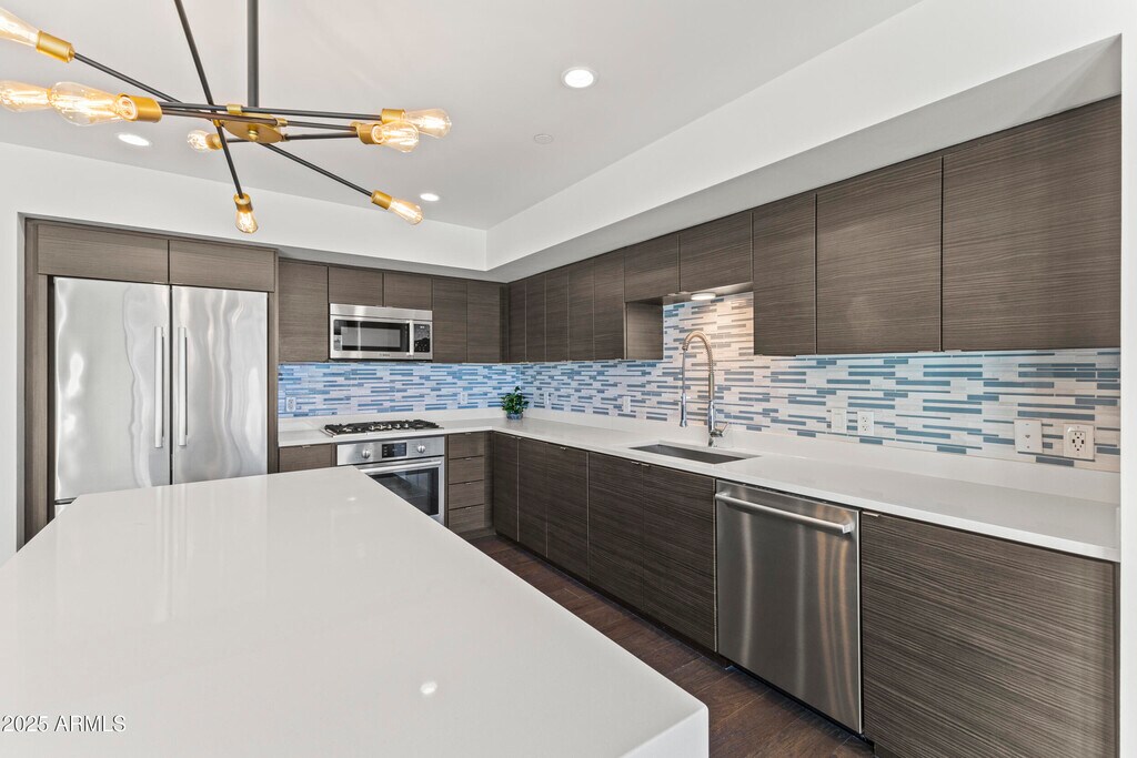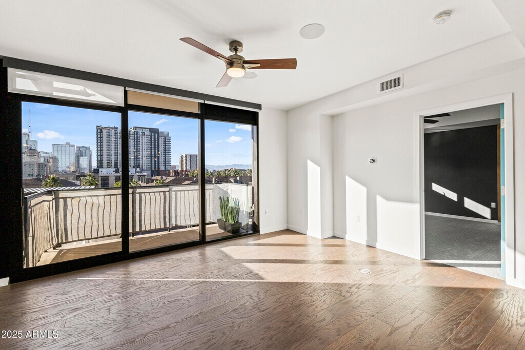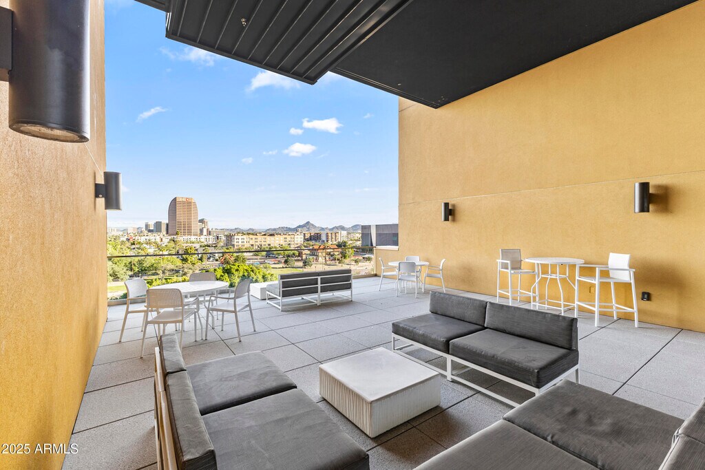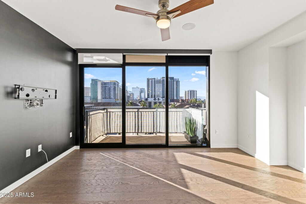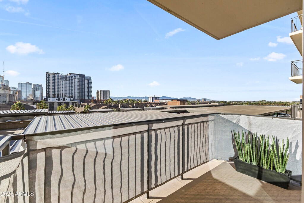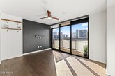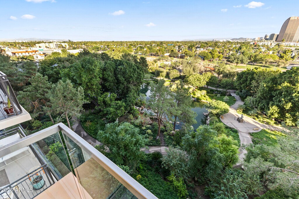 Welcome to this inviting 7th-floor home with beautiful downtown skyline views. Just outside your door is ''The Nest'' terrace,offering peaceful views of the Japanese Gardens it feels like having your own private backyard in the sky. Inside,the unit features quartz waterfall counters,Bosch appliances,a gas range,and wood flooring,offering a clean,modern space with high-end finishes. The community elevates everyday living with concierge service,a heated pool,a fantastic gym,rooftop views,gated parking,and stylish indoor/outdoor lounges. All of this just steps from Roosevelt Row's vibrant art,dining,and nightlife. No hidden fees rent includes internet,water,gated parking,and storage. Visitor parking available.